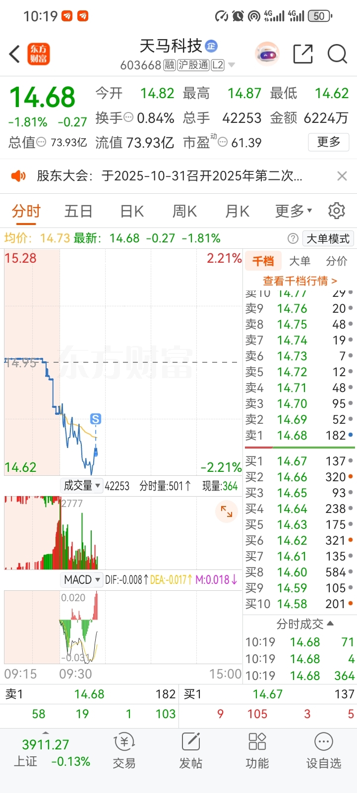 $天马科技(SH603668)$ 跑路了太烂了,看着科技没注意,买了一看就知道做饲料的,没啥技术还是随时倒闭的那种