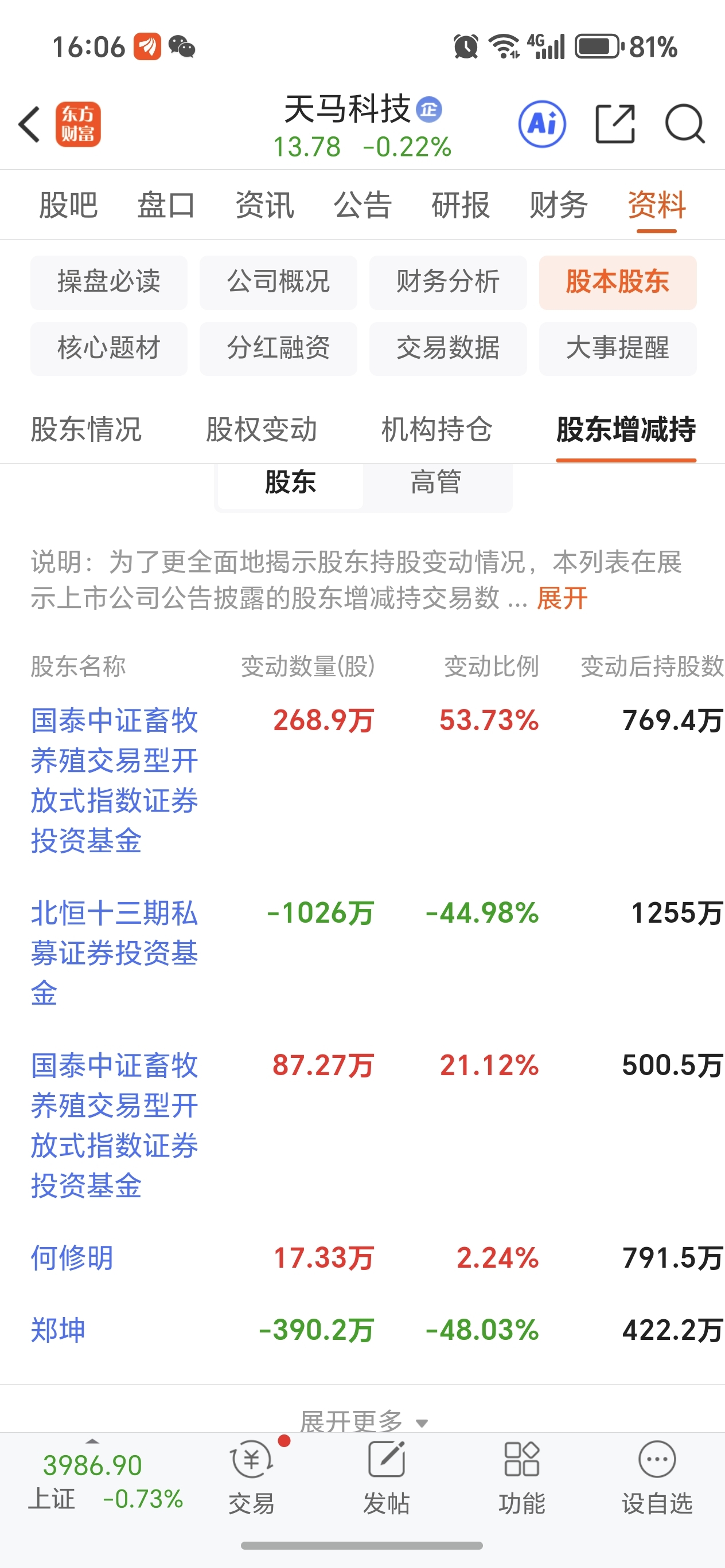 $天马科技(SH603668)$ 果不其然,九月底是员工持股减持1千多万股,剩下的应该是十月初不计成本抛光,导致温马的股价连续下跌!