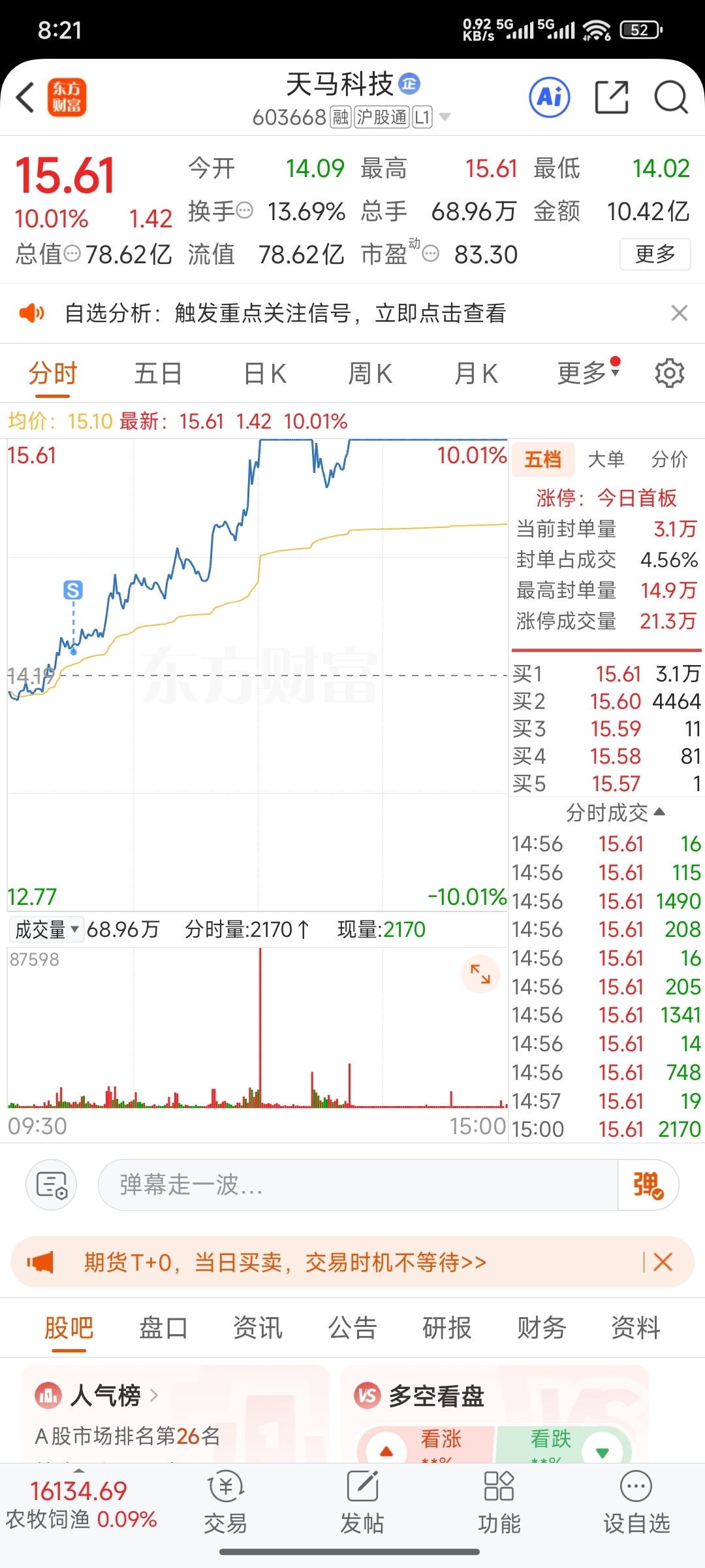 $天马科技(SH603668)$ 早上被吓走了,这两天老是被吓走,福龙马也是被吓走的,今天福龙马涨停了,这个也是福建板块的,这逻辑摆这,脑子一下子转不过来了