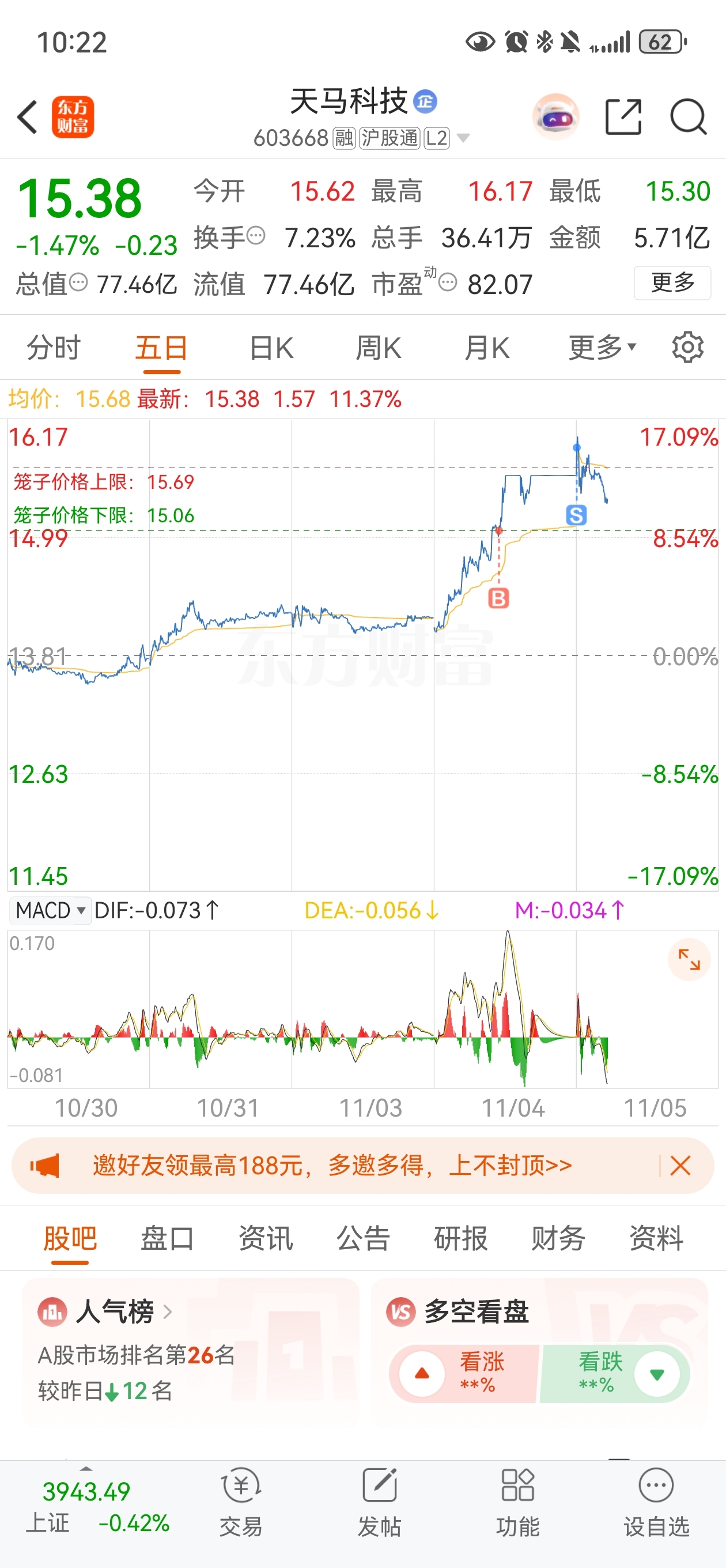 $天马科技(SH603668)$ 我砸盘了
