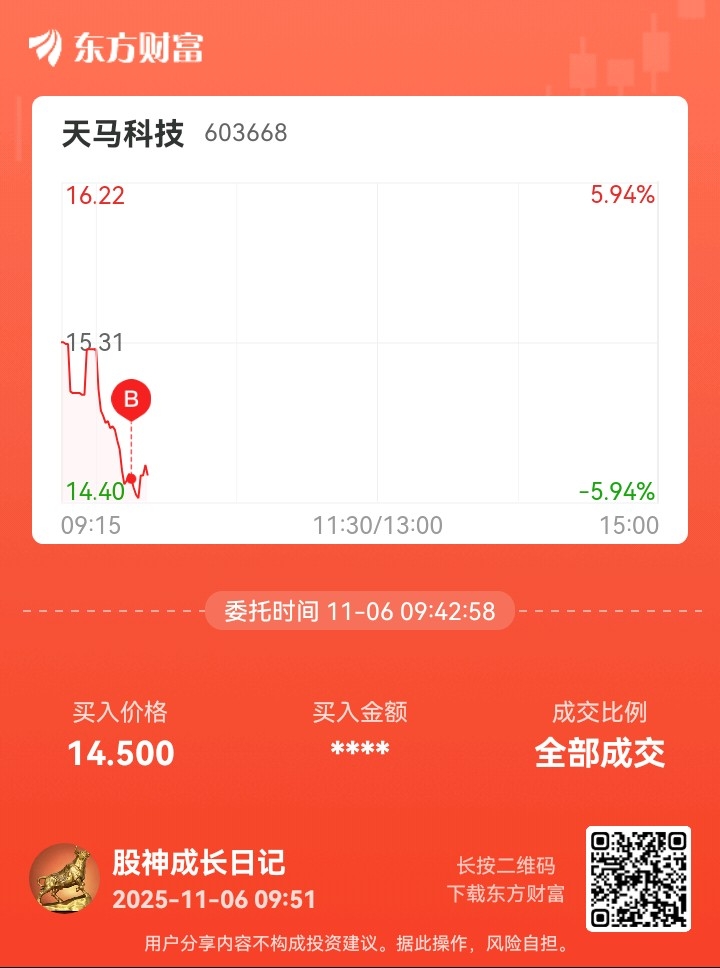 $天马科技(SH603668)$ 越跌越买,越买越跌