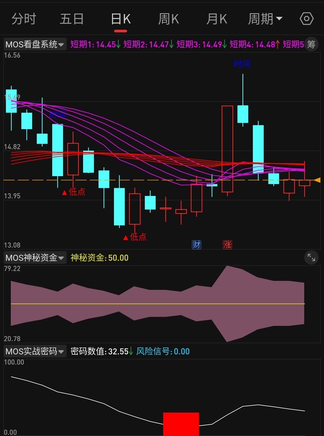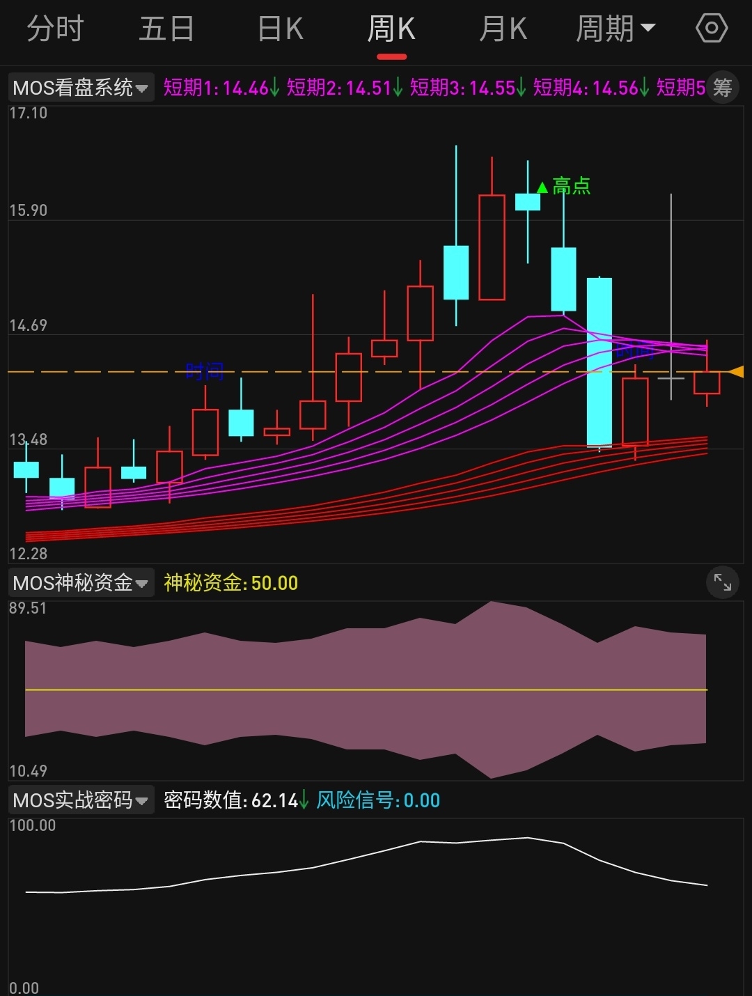 【mos跟踪妖马】震荡区间就是做T摊低成本 看他啥时候把周线紫色趋势带突破过去