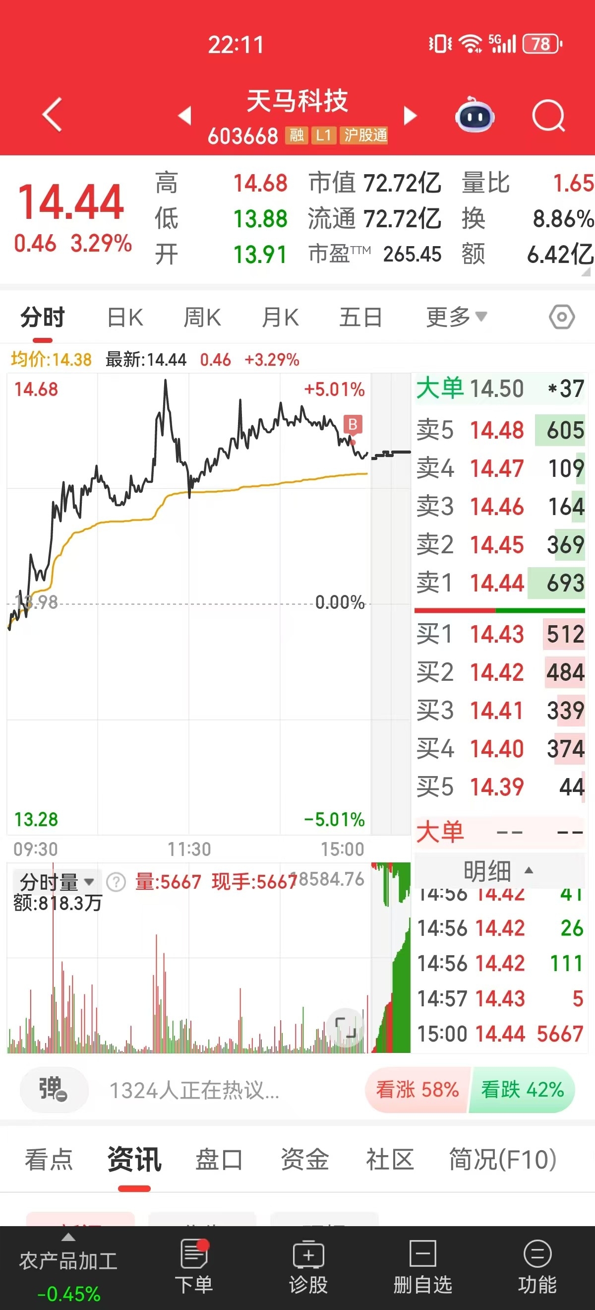 周五买入603668天马科技,海峡两岸+福建自贸,周五试突30日附近,成交换手活