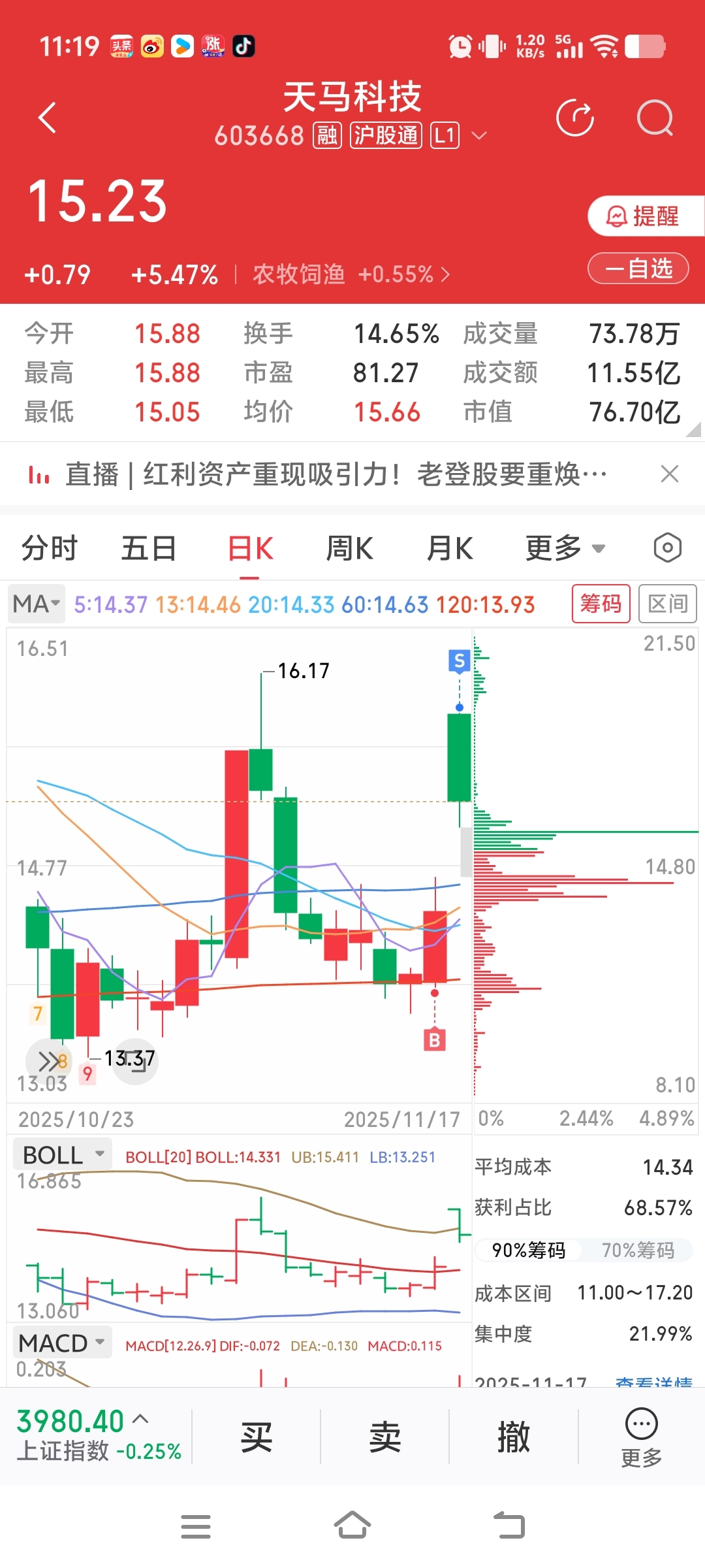 $天马科技(SH603668)$ 这票老庄太坏,没有一点格局,一起砸吧