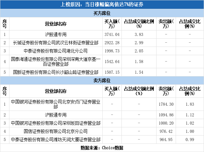 沪股通现身龙虎榜,天马科技涨停(11-19)
