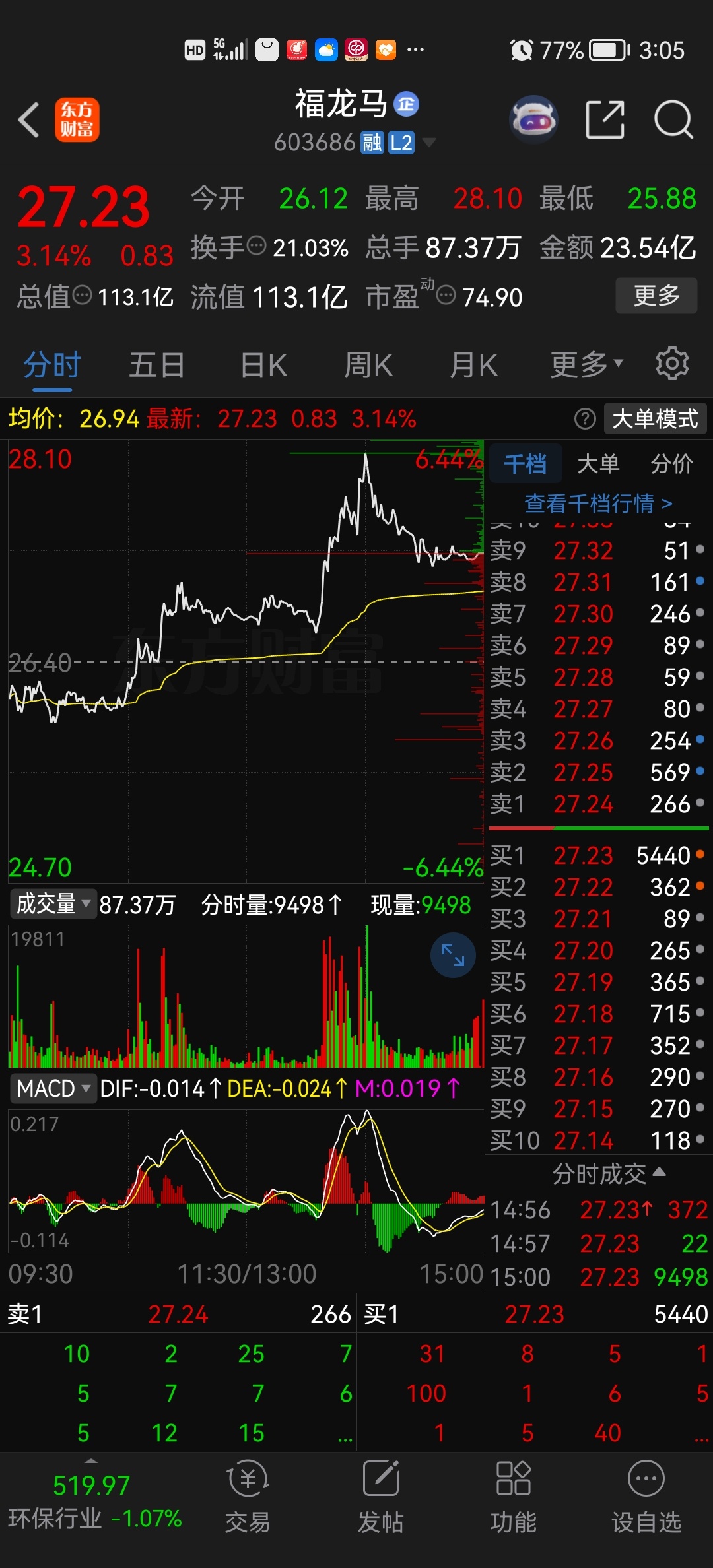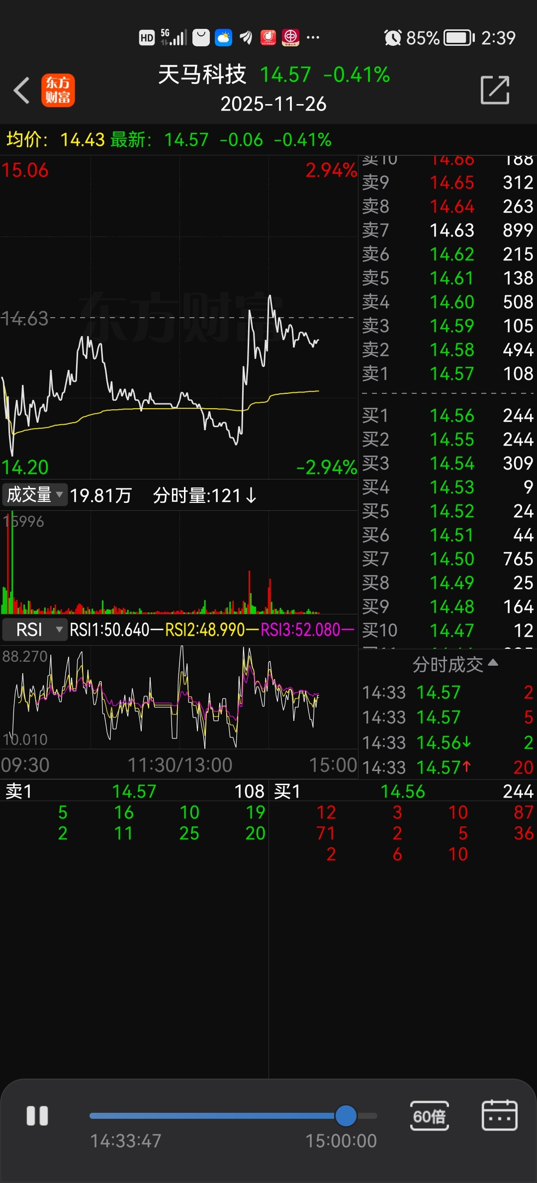 这两天云中马相对强势,福龙马跟云中马,但天马主跟福龙马。自己对比盘中启动时间和力度就知道了,好像马字又没希望了。马字有没有希望和天马关系大吗?别人是红盘拉,红盘收,天马绿盘拉,绿盘收。跟风。你赚钱难度大不大。天马盘中拉升幅度小你做T一追高,赚一个点T你甘心吗。你不甘心马上砸下来,收盘还是绿的。不小心还要亏钱