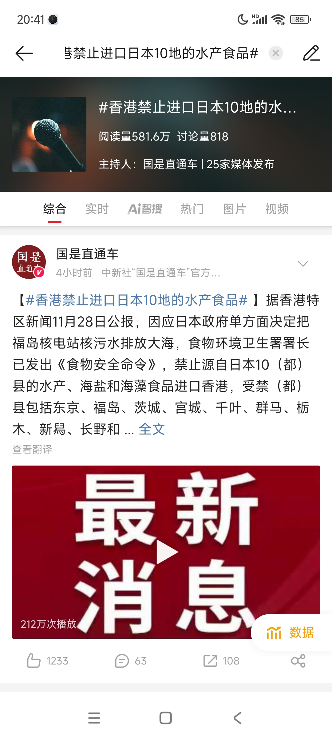 $天马科技(SH603668)$ 这条消息对天马来说值得两个点吗?香港也禁止日本海鲜,天马的鳗鱼水中黄金高端产品,香港的需求量大,主力看过来,天马行空