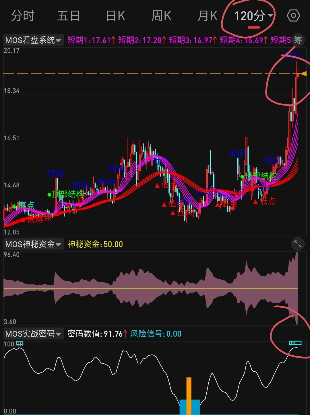 【mos跟踪妖马】120分钟级别连续出4个风险区域信号了 日线明天应该也会出
