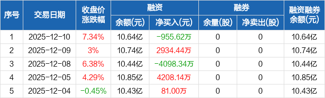 天马科技:融资净偿还955.62万元,融资余额10.64亿元(12-10)