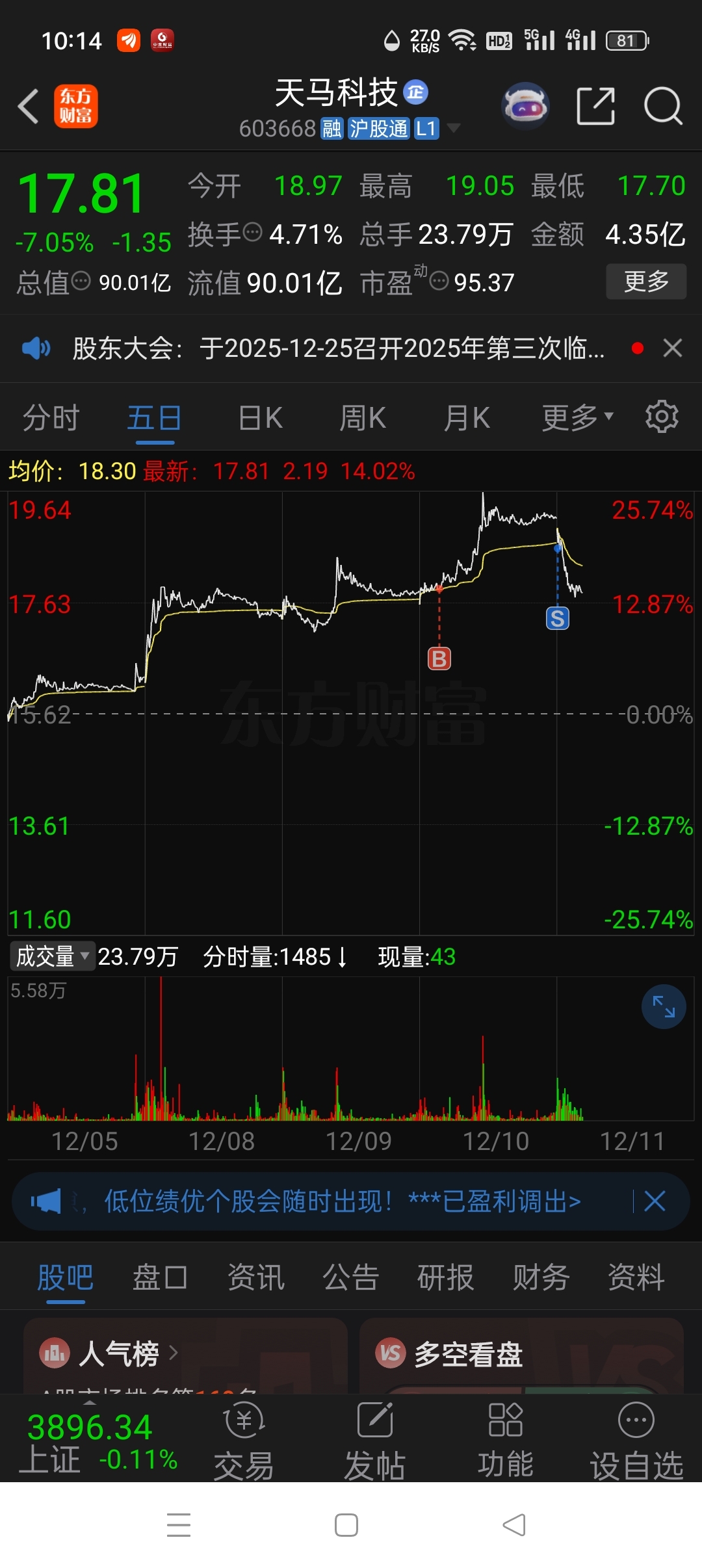 $天马科技(SH603668)$ 幸好跑得快,要不渣都没得剩