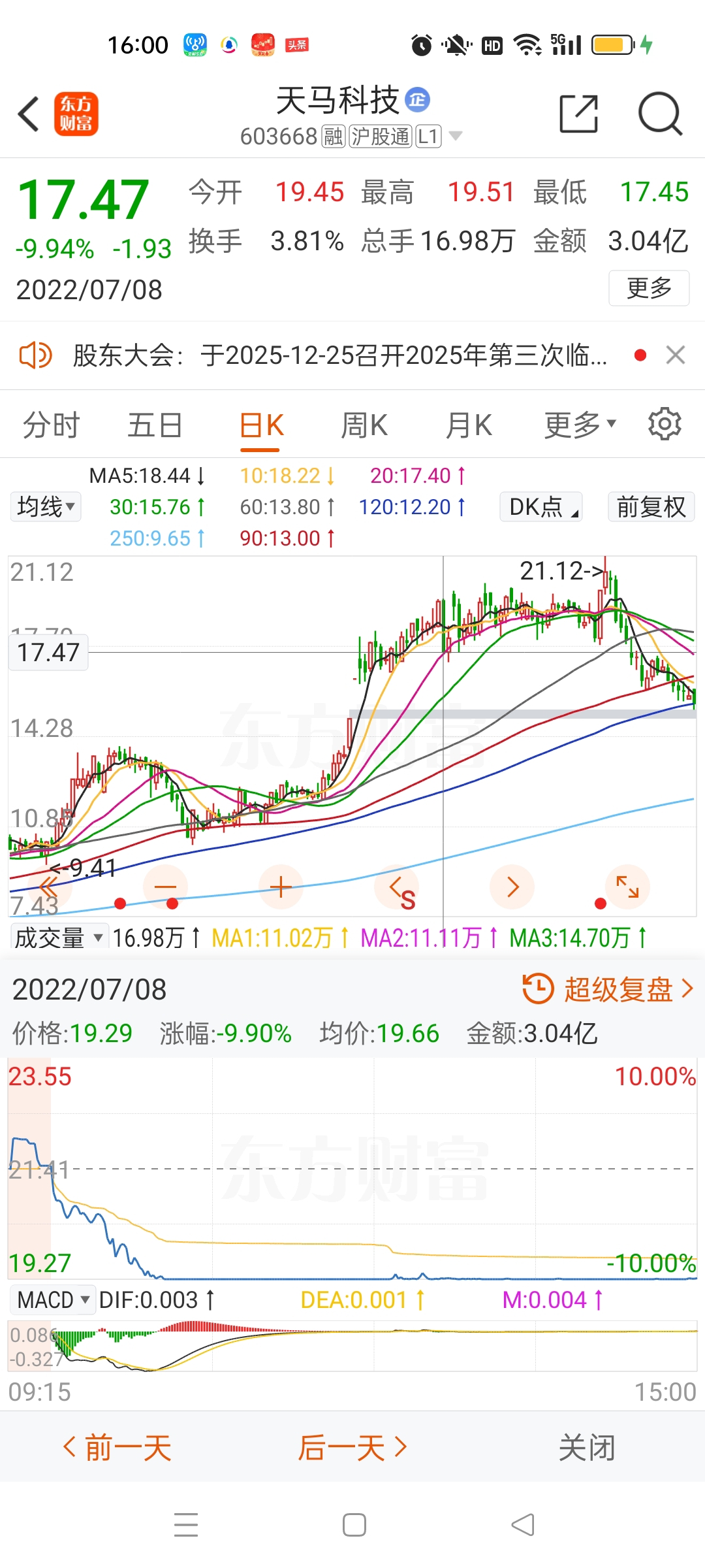 $天马科技(SH603668)$ 明天是不是底开,是就干上三个点收盘