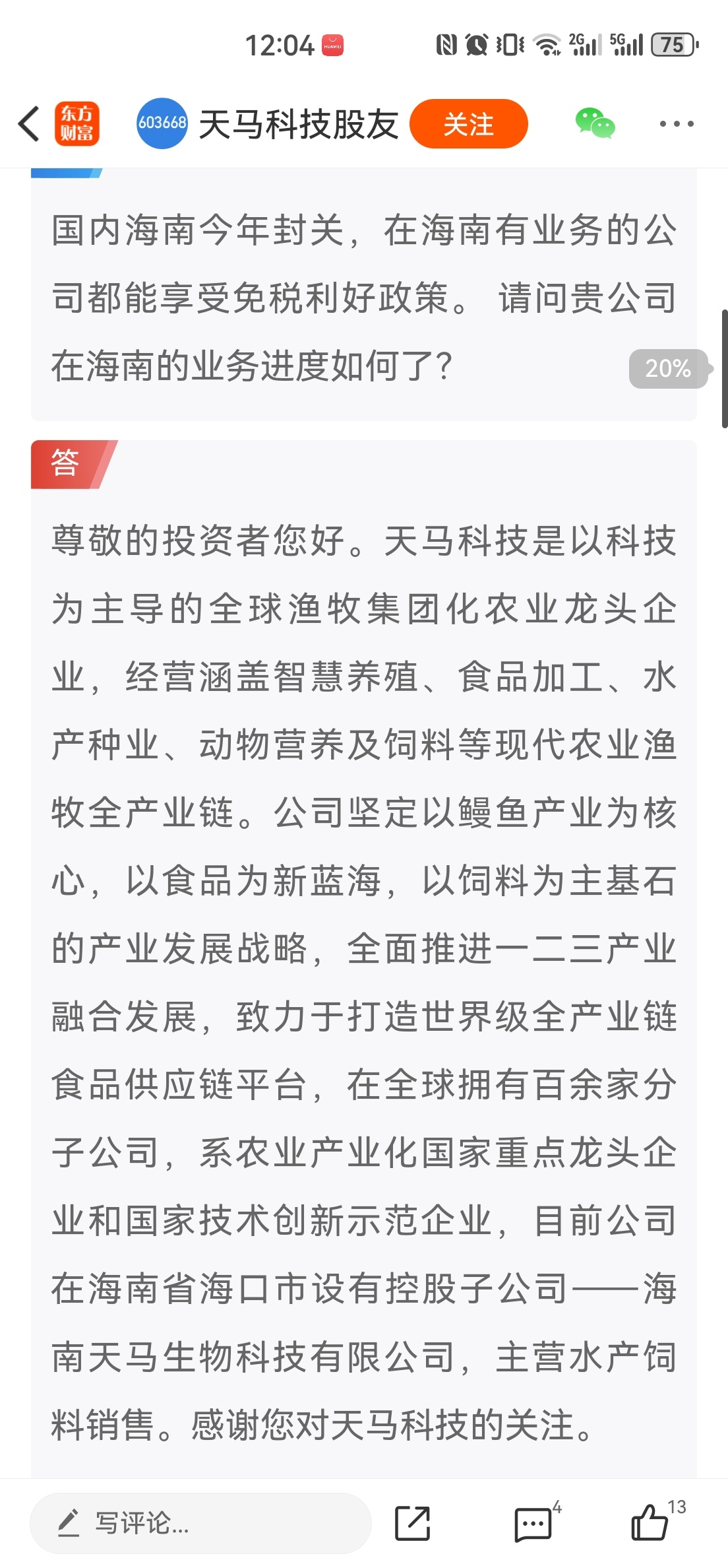 $天马科技(SH603668)$ 封关在即,兄弟们,大家一起加个海南自贸区概念吧。饲料出口会享受免税政策。