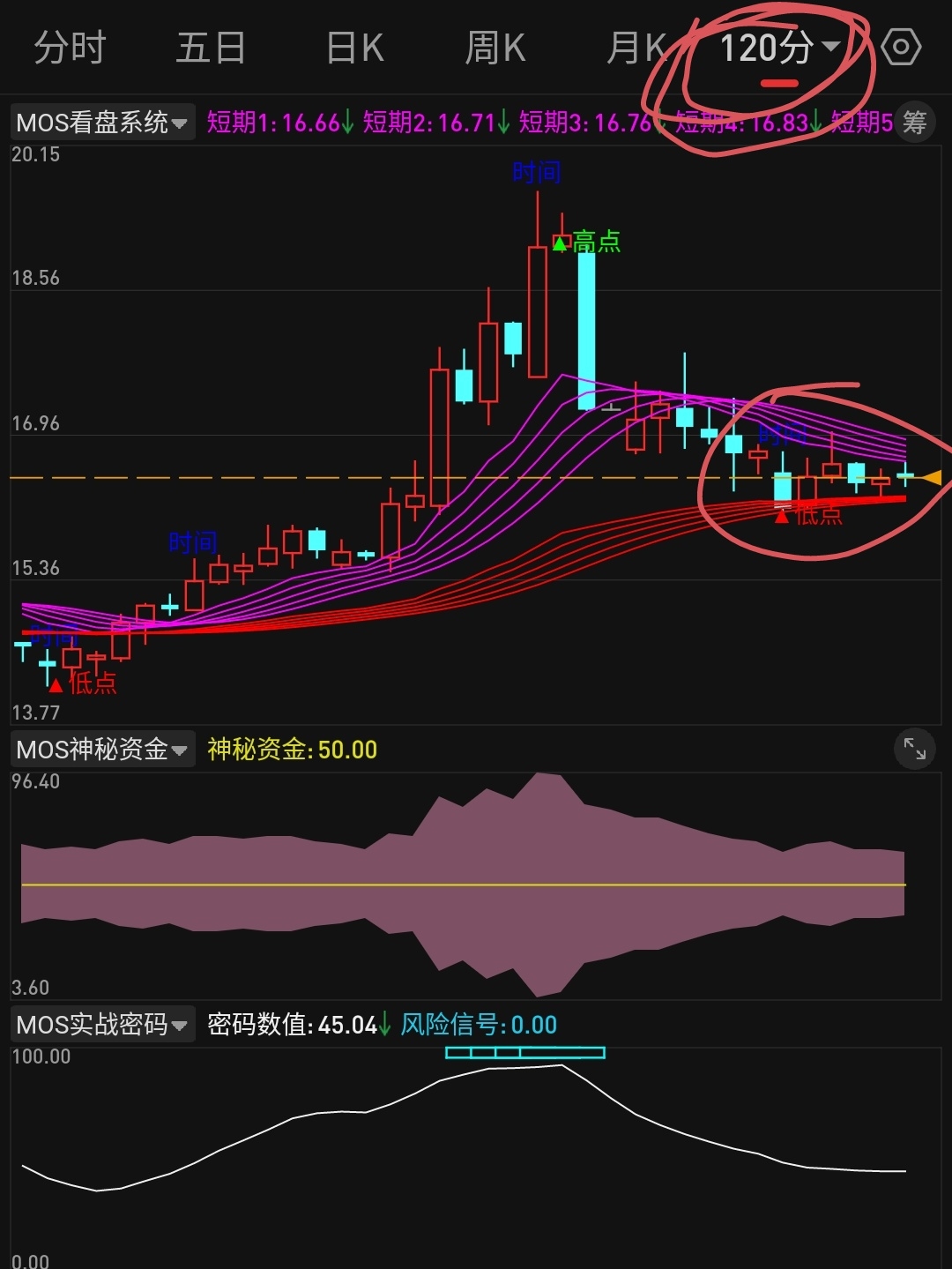 【mos跟踪妖马】120分钟红色趋势带苦苦支撑 下周有好戏看了 多空大战 踩一脚周线紫色趋势带继续表演