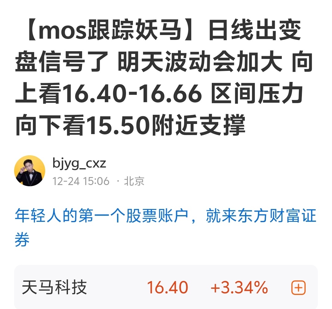 【mos跟踪妖马】和昨天预想的一样 16.40-16.66这个区间有压力 今天16.10留了一个缺口 看看能不能回补