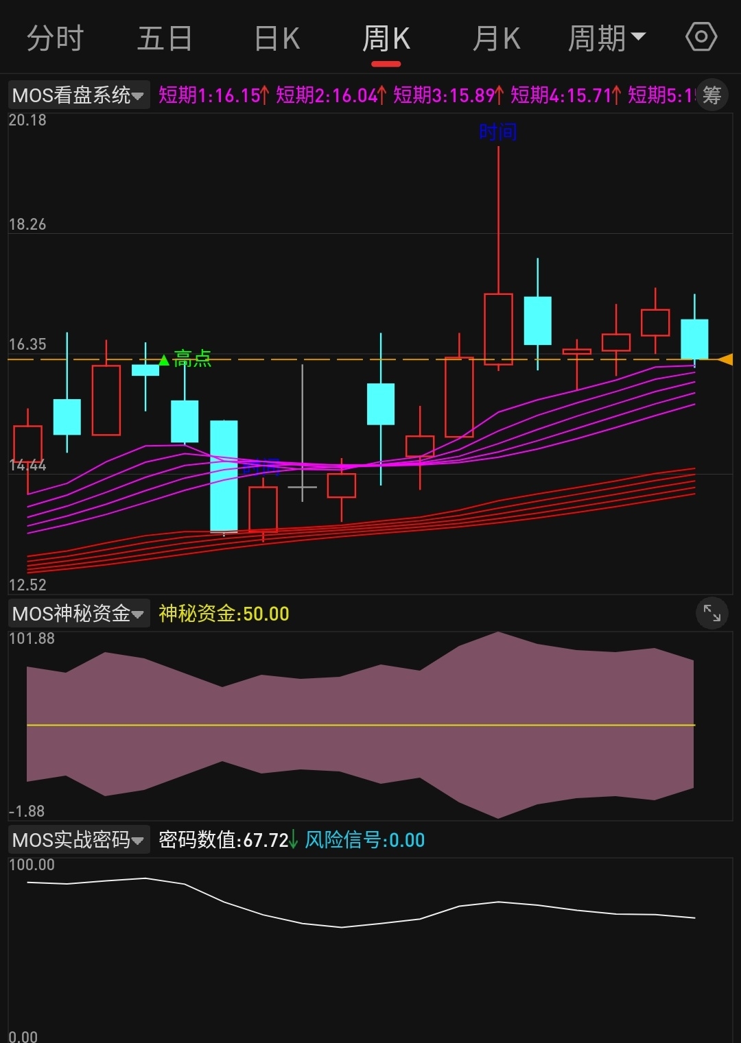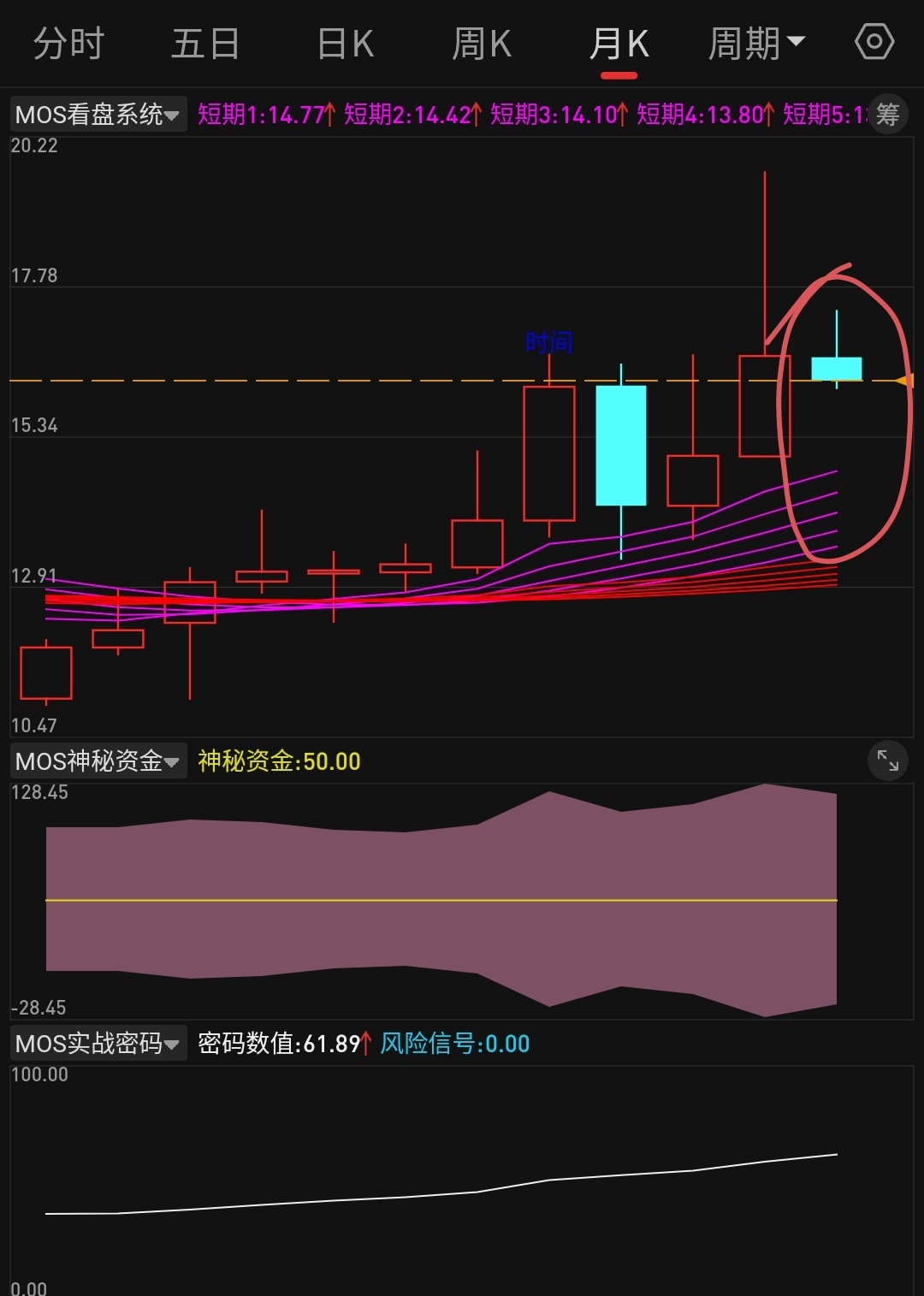 【mos跟踪妖马】日线红色趋势带要是撑不住的话 就会进入周线紫色趋势带 回踩周线紫色趋势带下轨 修复月线乖离率
