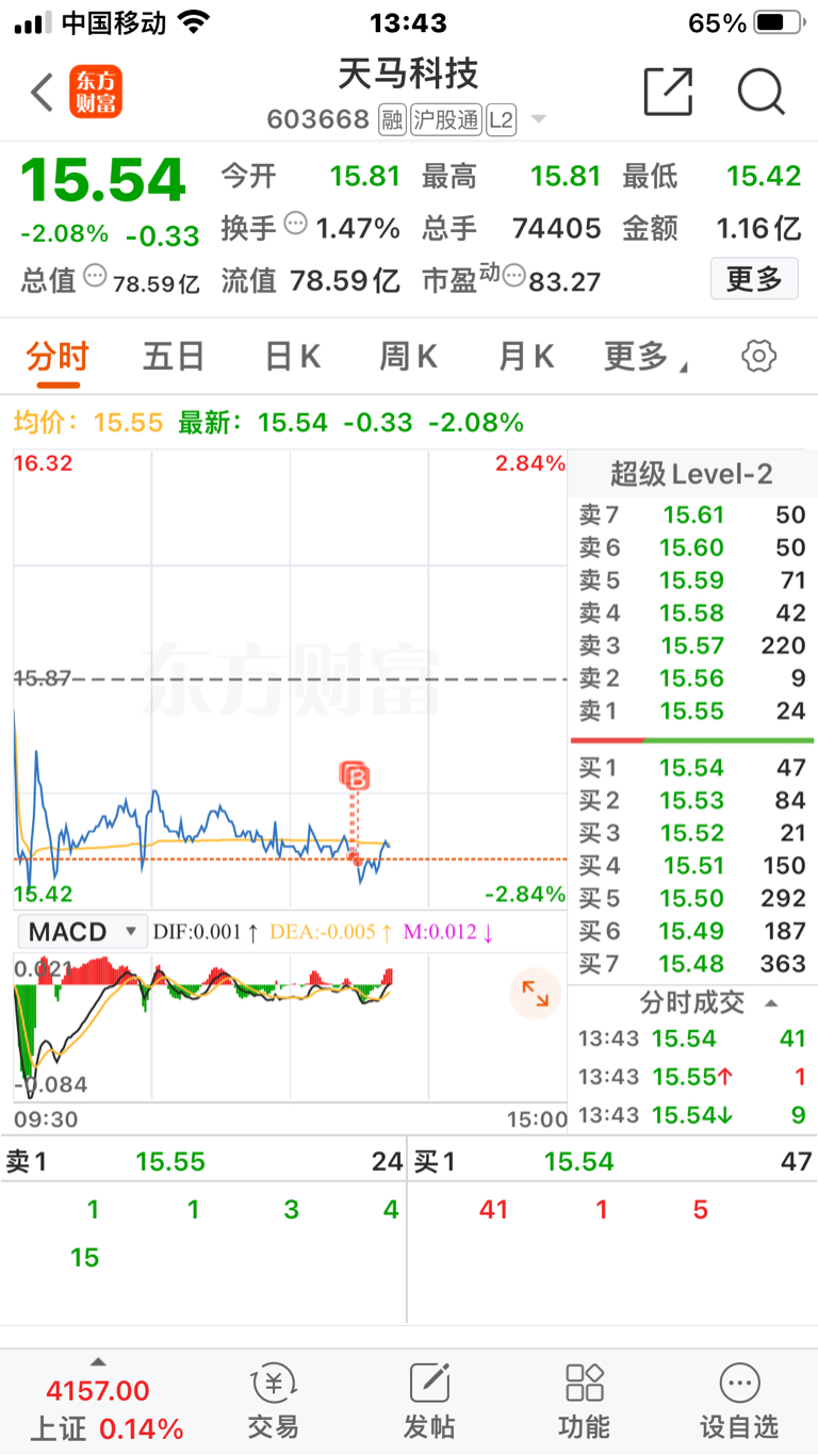 $天马科技(SH603668)$ 拉吧,已建仓,明天吃肉肉
