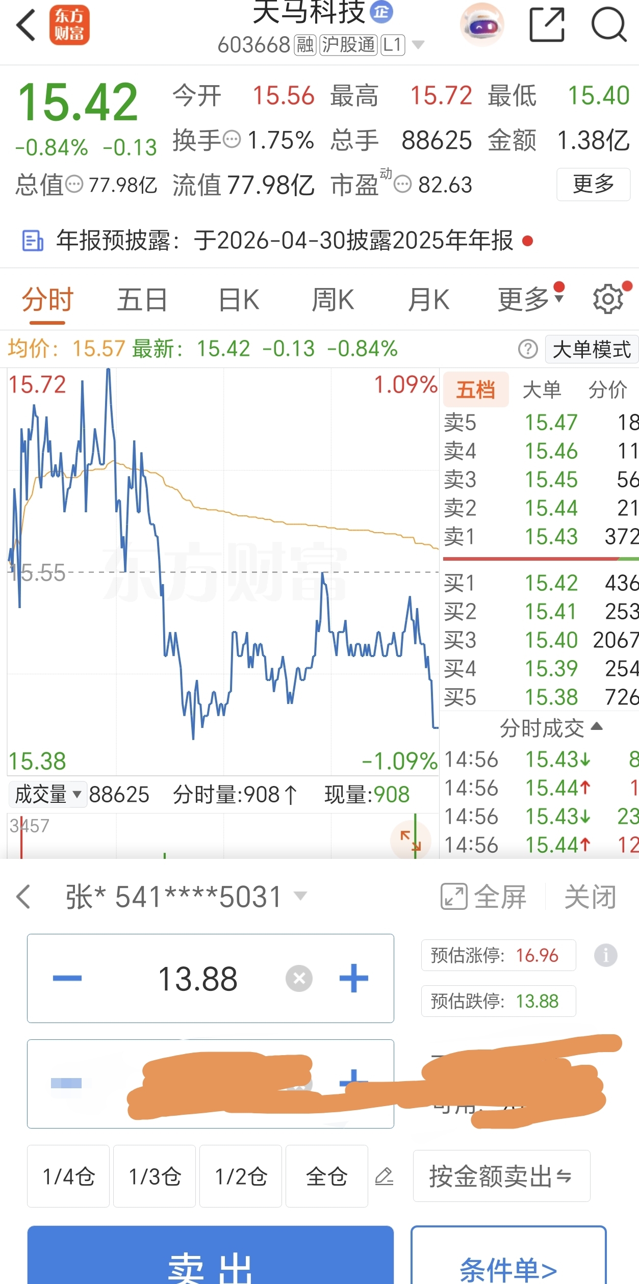 $天马科技(SH603668)$ 管你利好还是利空,先跑了再说。