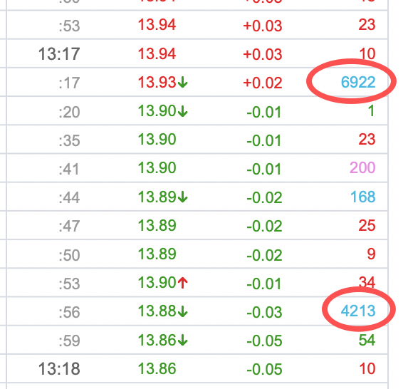 下午13:17居然有1万多手的内盘卖成交,第一次看到这个票有超万手的操作呢