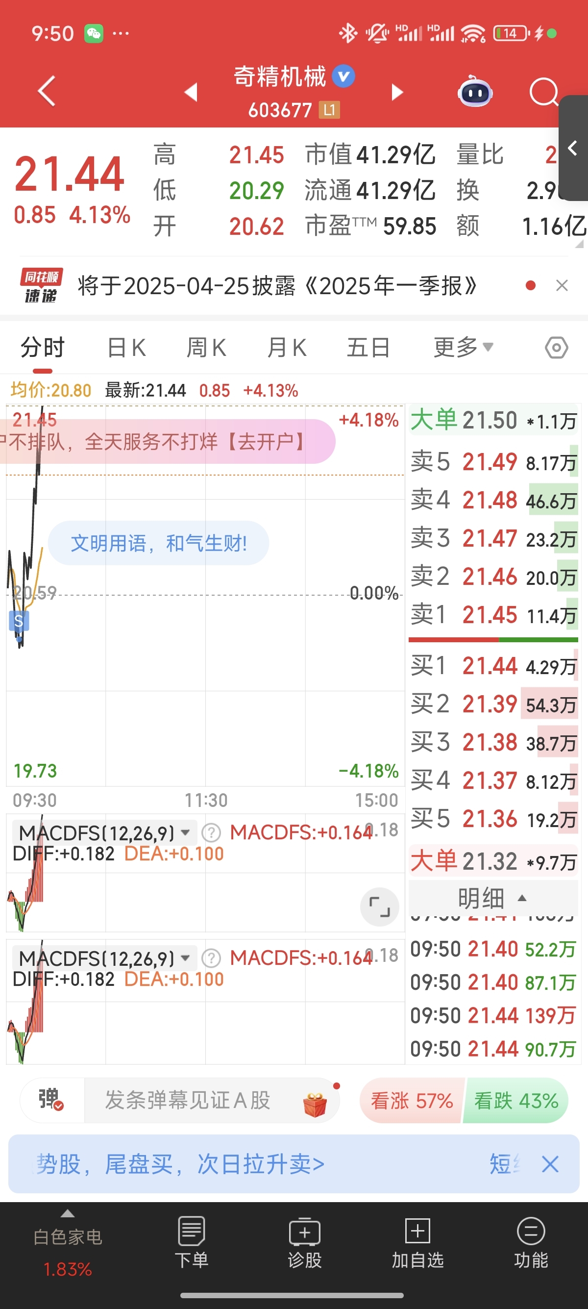 $奇精机械(SH603677)$ 兄弟们给我发红包