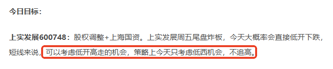 上实发展600748:股权调整+上海G资。上实发展今天低开高走,盘中上午都是涨停的,整体是符合盘前预期的;可惜下午没有封住,收盘回落了一些。开盘低西入场,今天仍然是大肉。