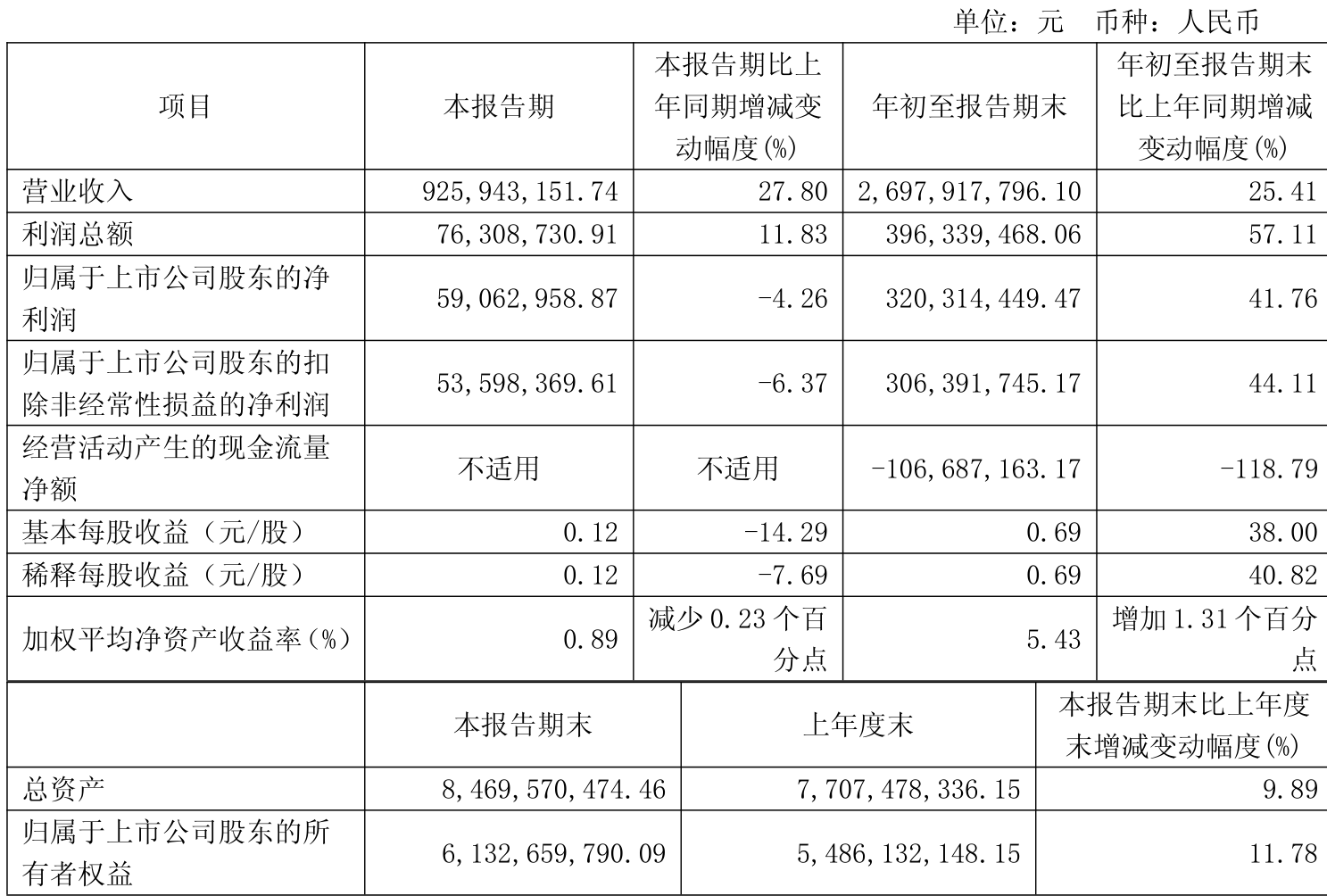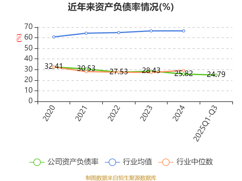 2025年前三季度,公司流动比率为3.37,速动比率为2.35。