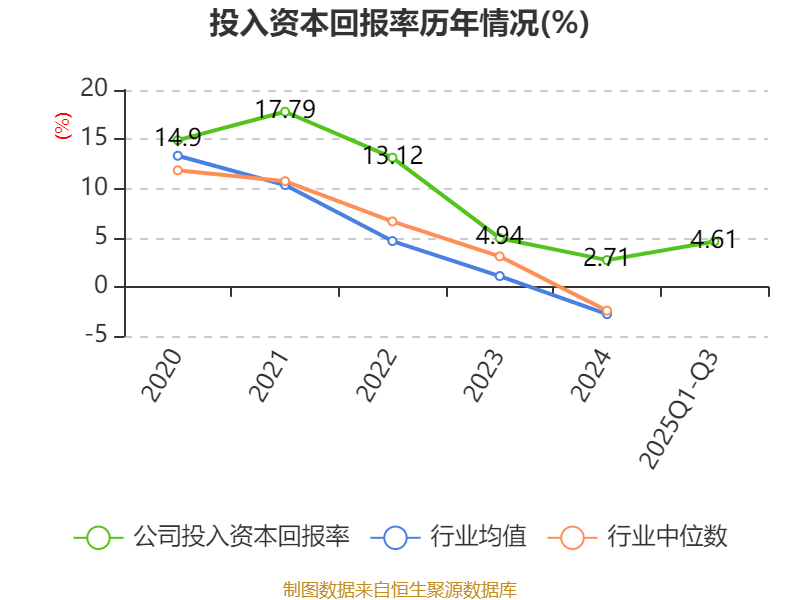 盈利能力方面, 2025年前三季度公司加权平均净资产收益率为5.43%,同比上升1.31个百分点。公司2025年前三季度投入资本回报率为4.61%,较上年同期上升1.4个百分点。