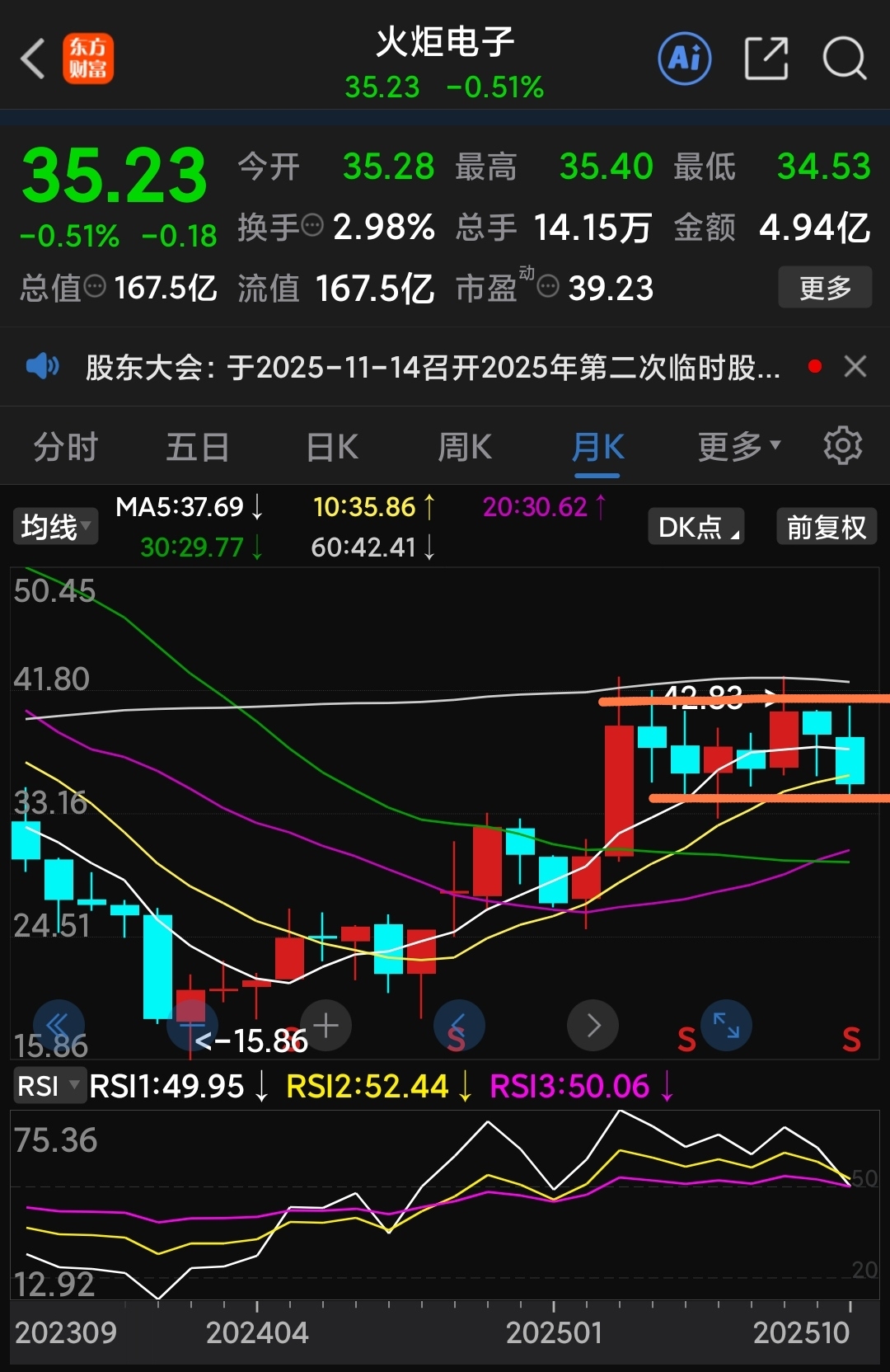 $火炬电子(SH603678)$ 大趋势向上,途中平台震荡,然后继续向上,火炬电子长期没问题,等向上突破平台可以加仓,现在可以高抛低吸降低成本,何时突破不用猜,我们无法左右股票的走势,只能以策略应对他的涨跌,看懂了就操作,看不懂就休息,如果七个月都等了,不防再等等