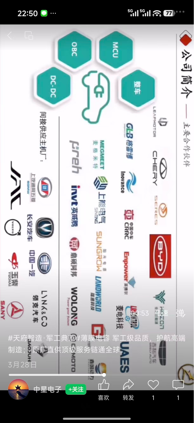 中星电子是唯一一家阳光电源的供应商,下游还有比亚迪、领跑汽车等大部分一线品牌20