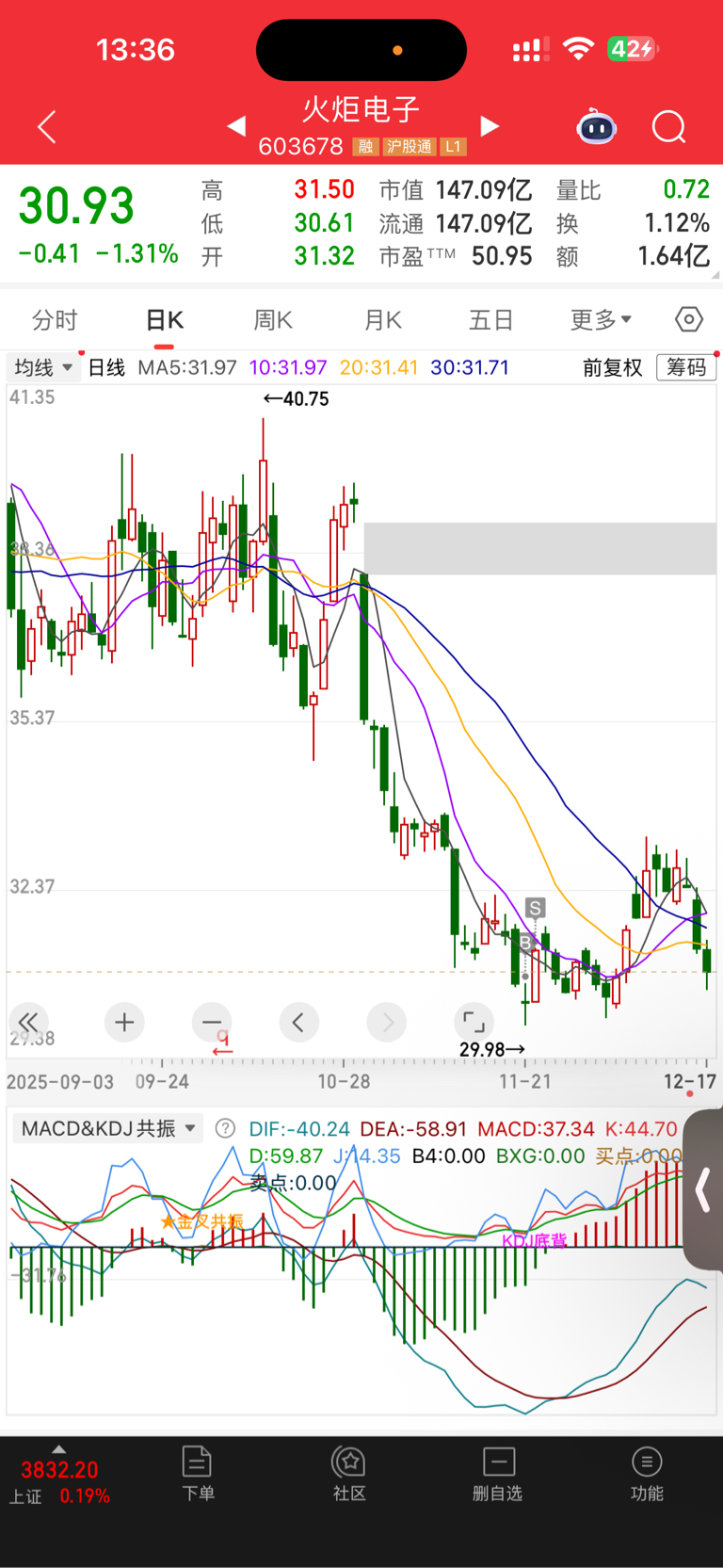 $火炬电子(SH603678)$ 感觉今天只是开胃菜吧,跟10.29走势一样,短期底应该在27左右,不排除更低,典型的收割手法,主要是没任何可以炒的题材,也意味着这不是一个能爆发的股,即使好起来了也是东拼西凑一些概念一上一下的涨几个点,这是最致命的,建议要么加仓扔进去卸载半年后再看,要么跑,直接上图不马后炮