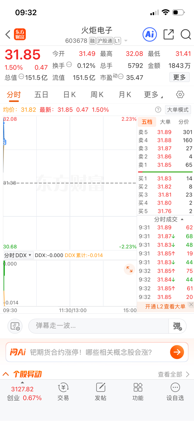 $火炬电子(SH603678)$ 跑了,这股涨不动,跌得快