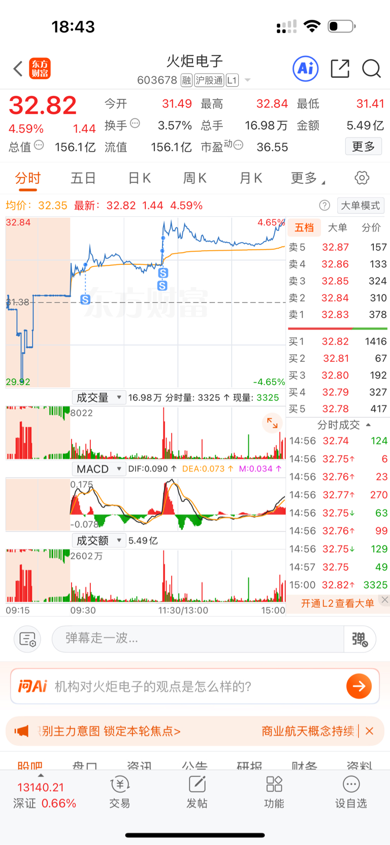 $火炬电子(SH603678)$ 卖飞了,下周32有机会接回来不