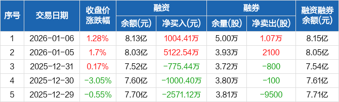 火炬电子:融资净买入1004.41万元,融资余额8.13亿元(01-06)