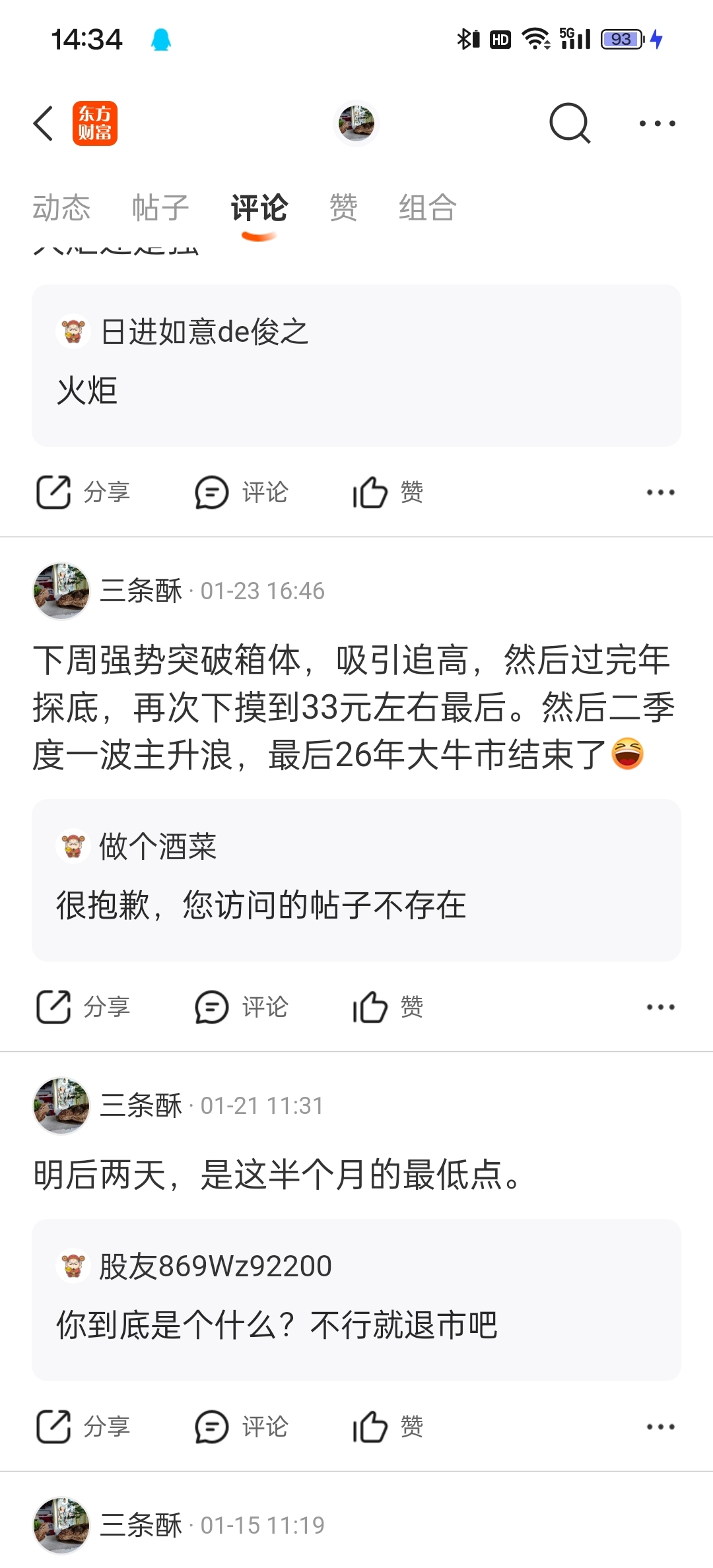 温馨提示: 1.根据《证券法》规定,禁止编造、传播虚假信息或者误导性信息,扰乱证券市场;2.用户在本社区发表的所有资料、言论等仅代表个人观点,与本网站立场无关,不对您构成任何投资建议。用户应基于自己的独立判断,自行决定证券投资并承担相应风险。《东方财富社区管理规定》