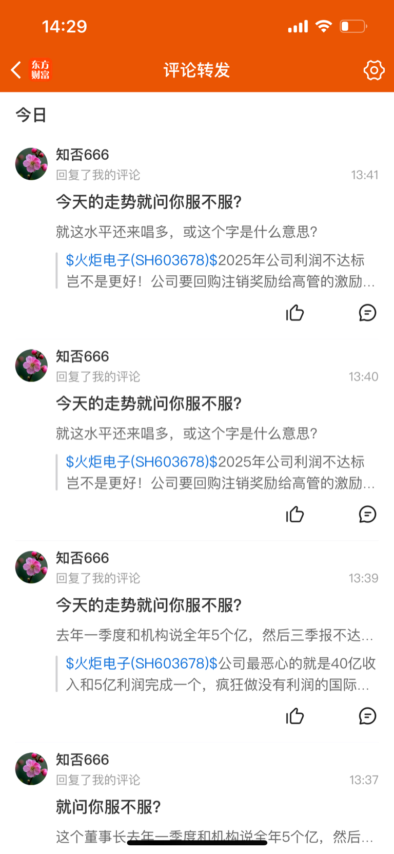 $火炬电子(SH603678)$ 昨天跌停 今天红一点 就服不服 合着真是狗托啊 自己的钱不是钱