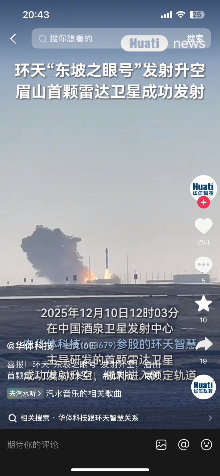 $华体科技(SH603679)$ 环天智慧 星源号 24号 首飞 恭喜成功
