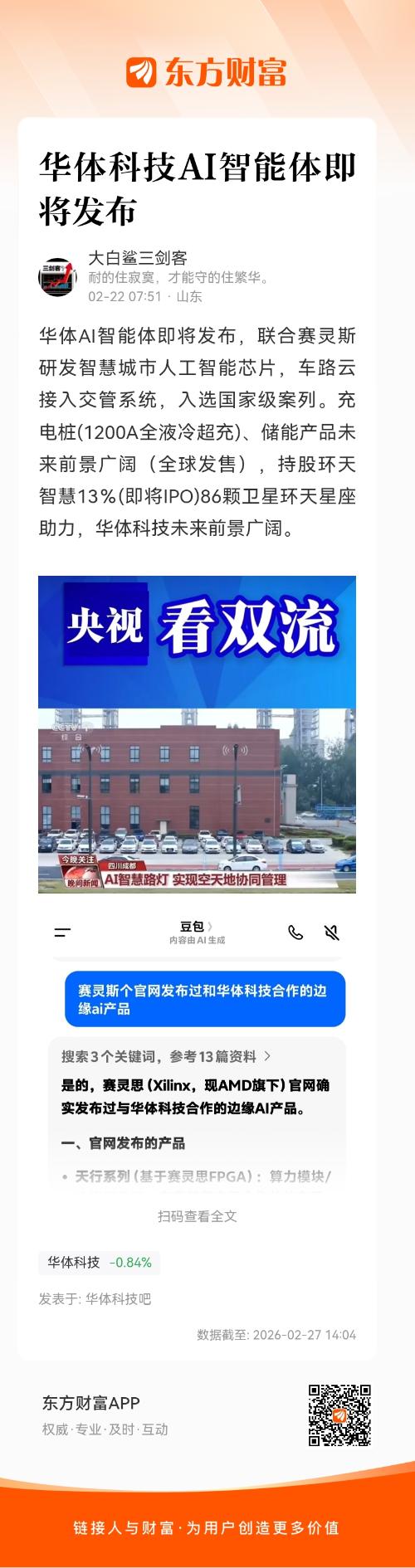 华体AI智能体即将发布,联合赛灵斯研发智慧城市人工智能芯片,车路云接入交管系统,入选国家级案列。充电桩(1200A全液冷超充)、储能产品未来前景广阔(全球发售),持股环天智慧13%(即将IPO)86颗卫星环天星座助力,华体科技未来前景广阔。
