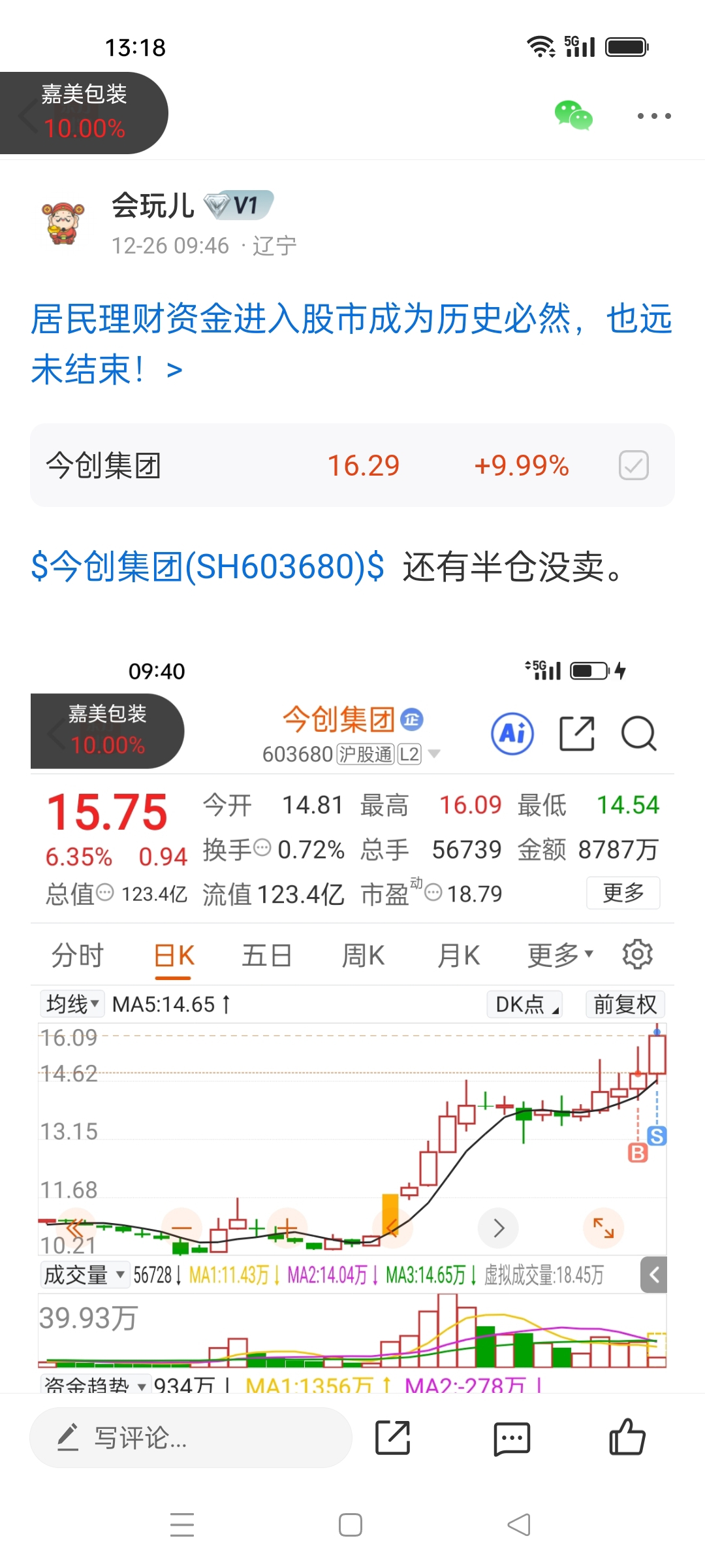 $今创集团(SH603680)$ 封单的有点少,但暂时看不到抛压。这半仓的涨停能守住么。。
