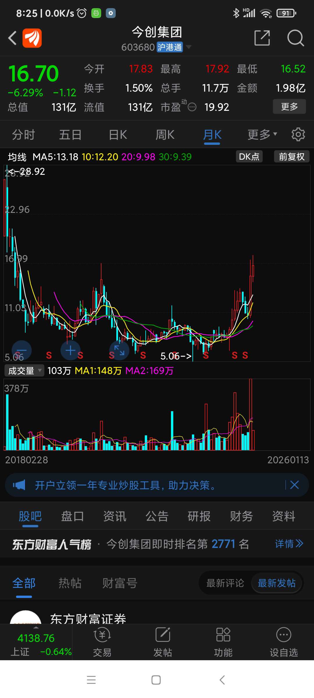 温馨提示: 1.根据《证券法》规定,禁止编造、传播虚假信息或者误导性信息,扰乱证券市场;2.用户在本社区发表的所有资料、言论等仅代表个人观点,与本网站立场无关,不对您构成任何投资建议。用户应基于自己的独立判断,自行决定证券投资并承担相应风险。《东方财富社区管理规定》