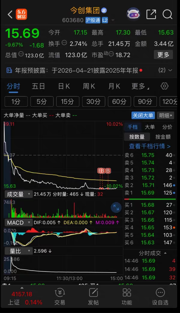$今创集团(SH603680)$ 15.63元买了