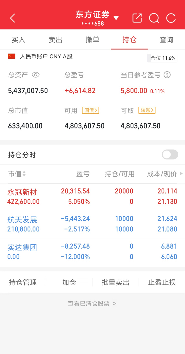 今日买进$永冠新材(SH603681)$ 继续持有$航天发展(SZ000547)$ 卖出$实达集团(SH600734)$