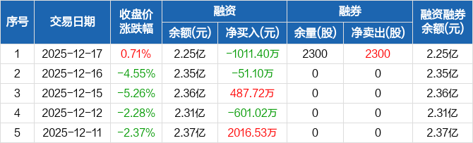 永冠新材:融资净偿还1011.4万元,融资余额2.25亿元(12-17)