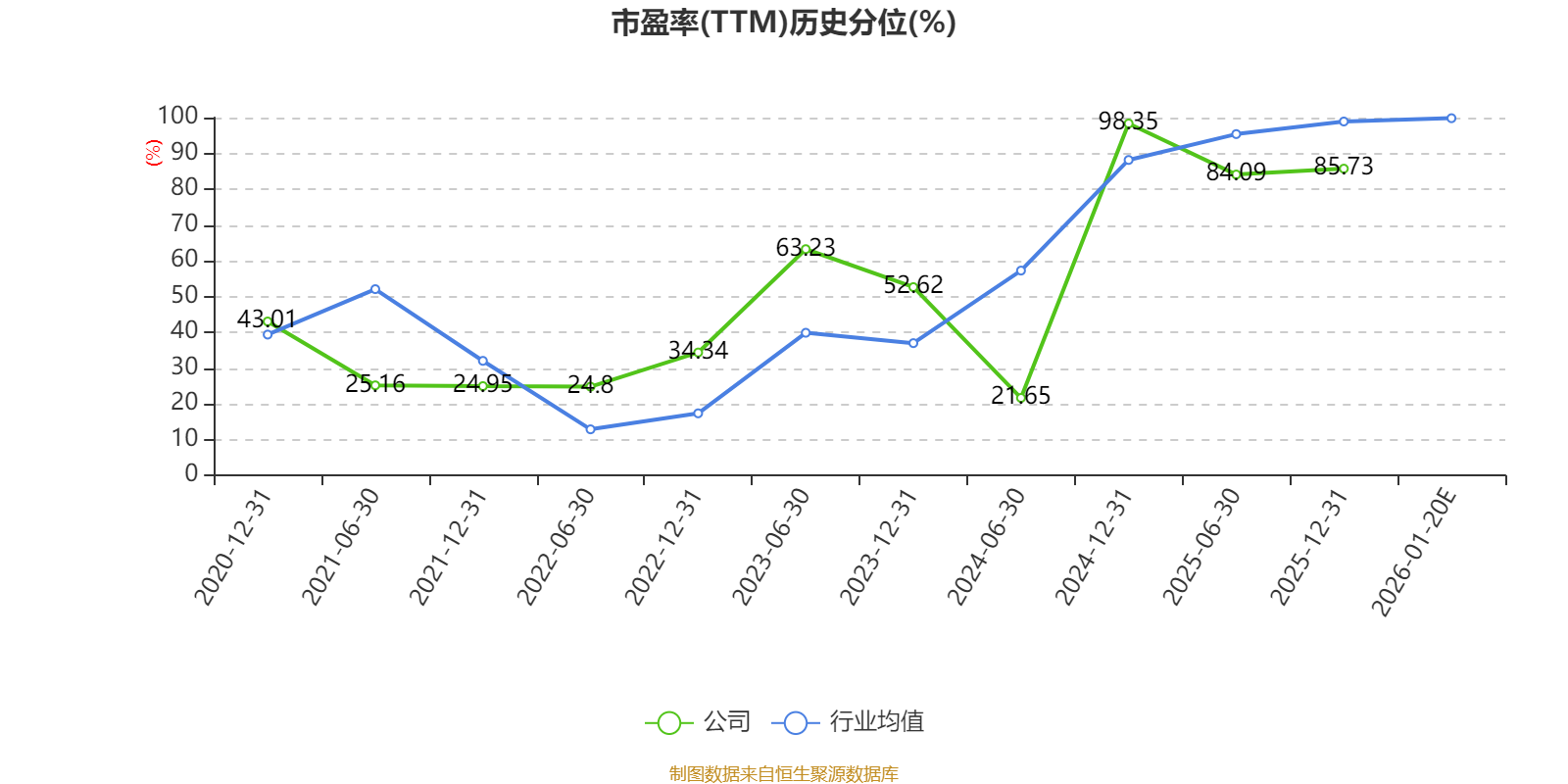 以本次披露业绩预告均值计算,公司近年市盈率(TTM)图如下所示: