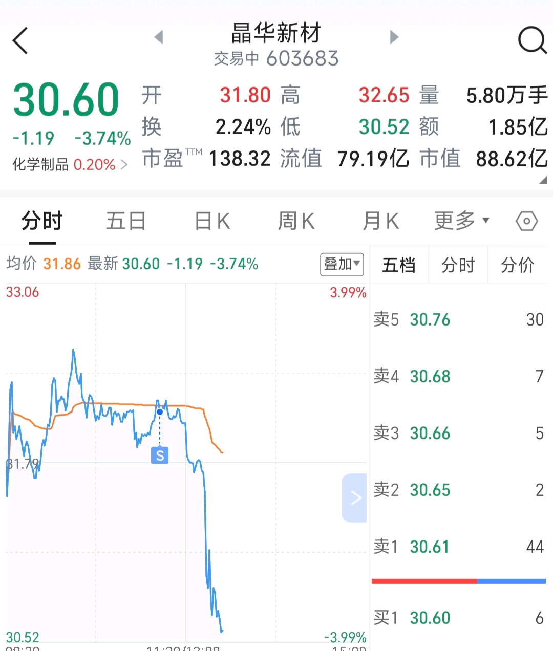 $晶华新材(SH603683)$ 真的是运气,上午才卖掉