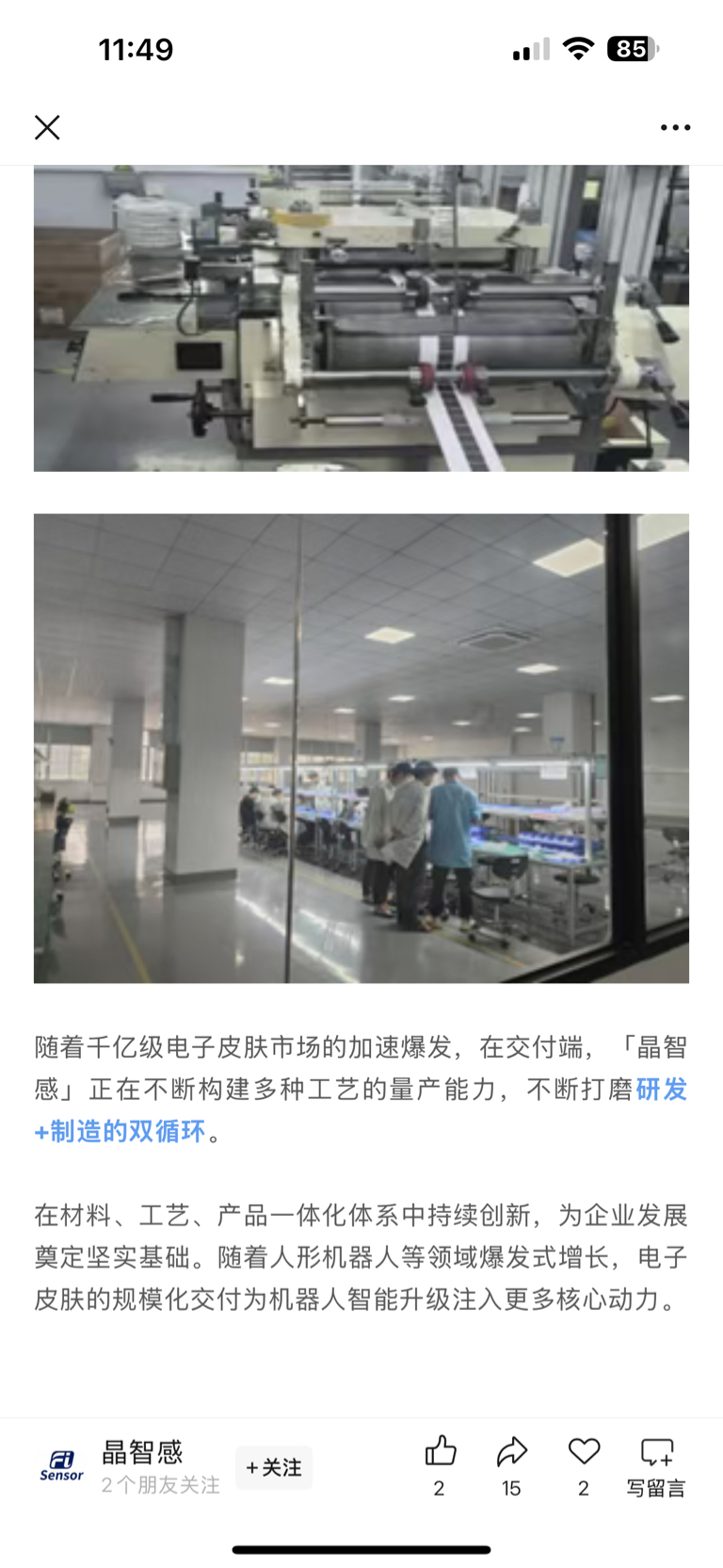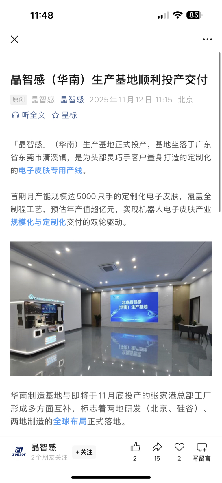 晶智感(华南)生产基地顺利投产交付!首期月产能规模达5000只手的定制化电子皮肤