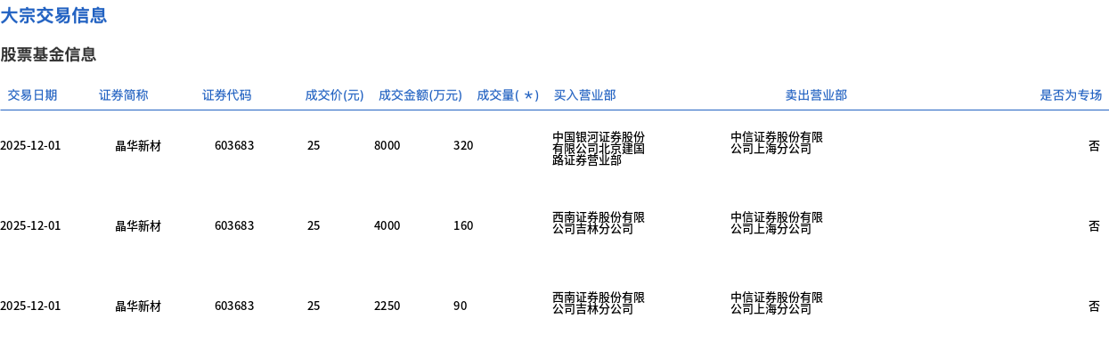 晶华新材今日大宗交易折价成交570万股,成交额1.43亿元