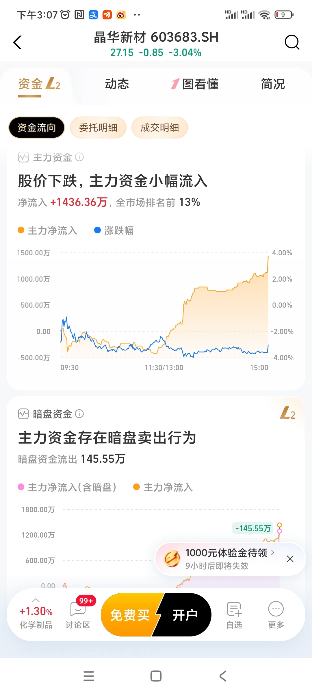 $晶华新材(SH603683)$ 暗盘流出了一点点