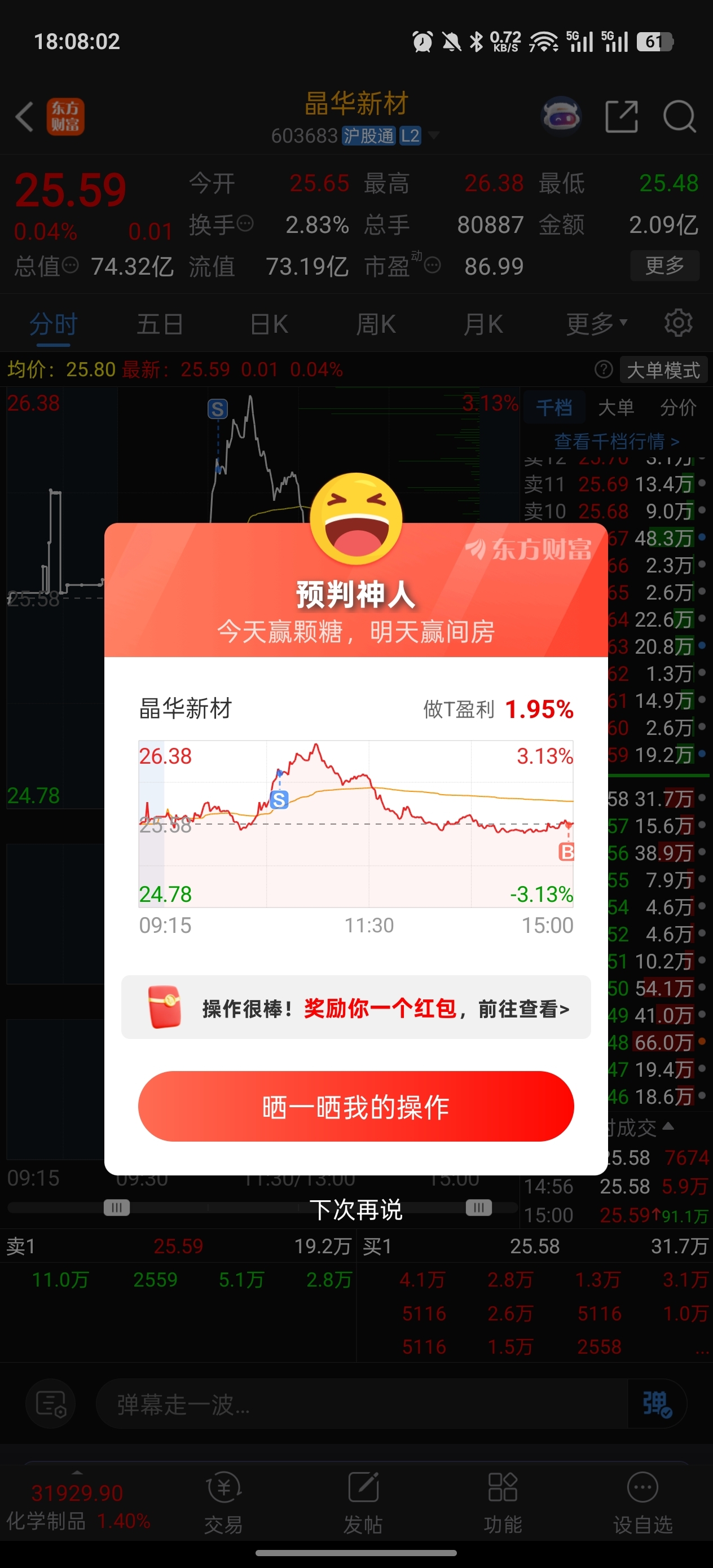 $晶华新材(SH603683)$ 被套得只能每天做个T