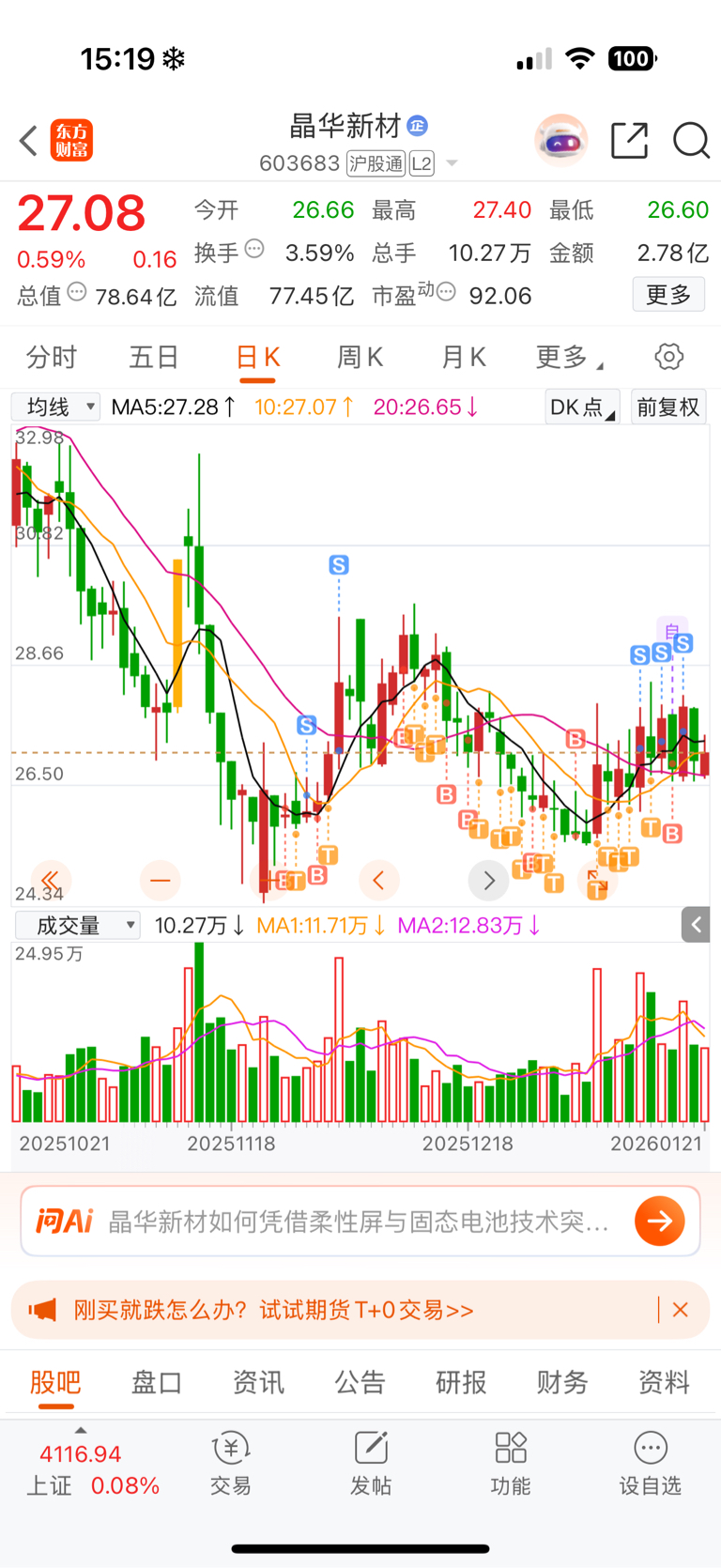 $晶华新材(SH603683)$ 赚了两万我走了 你可以拉了