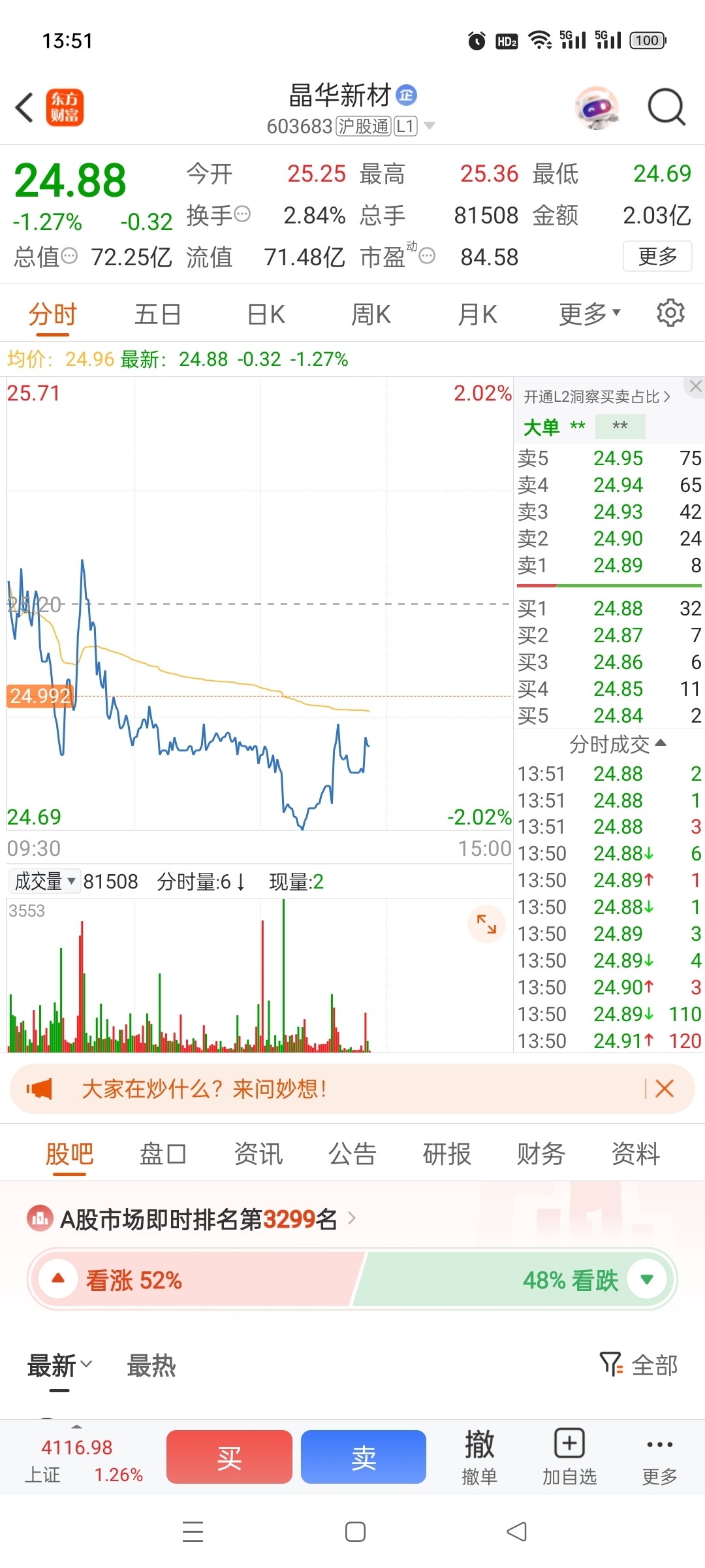 $晶华新材(SH603683)$ 大哥,你看我的持仓成本,你不要再涨了,行不行啊?再涨我就盈利了!