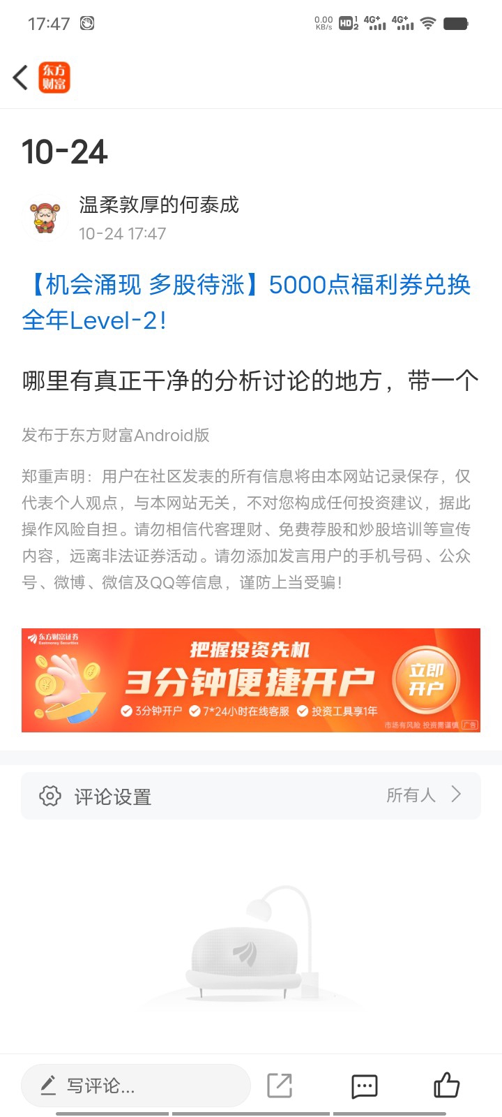 温馨提示: 1.根据《证券法》规定,禁止编造、传播虚假信息或者误导性信息,扰乱证券市场;2.用户在本社区发表的所有资料、言论等仅代表个人观点,与本网站立场无关,不对您构成任何投资建议。用户应基于自己的独立判断,自行决定证券投资并承担相应风险。《东方财富社区管理规定》